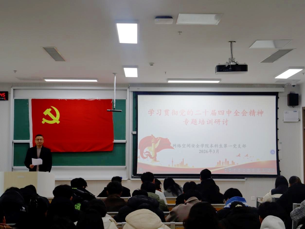 会议“第一议题”学习了习近平总书记在31日出版的第 5 期《求是》杂志发表的重要文章《让愿担当、敢担当、善担当蔚然成风》。在本科生第一党支部的培训研讨会议中,武玉龙带领全体党员观看学习了《学习贯彻党的二十届四中全会精神培训课程》。武玉龙强调,全体党员要认真领会党的二十届四中全会精神,要以此次学习为重要契机,切实把担当精神融入日常学习生活,在学业上争当表率,在服务同学中主动作为,在网络安全实践中锤炼过硬本领,以行动践行新时代党员的初心与使命。