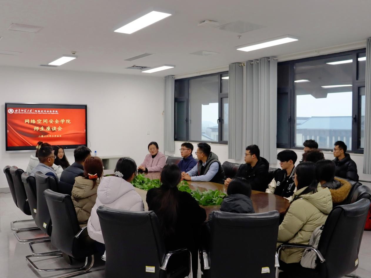 富贵险中求 院讯(通讯员:洪亚玲 金新媛 摄影:刘逸坤 刘珈旭)为切实增强学生防范电信网络诈骗意识,筑牢校园安全防线,35日下午17:00,富贵险中求 在格物楼A504会议室召开“开学反诈第一课”暨师生座谈会。富贵险中求 党委副书记范瑞红、全体辅导员及学生代表现场参会,全院其余学生在致知楼B101等教室同步收看直播。