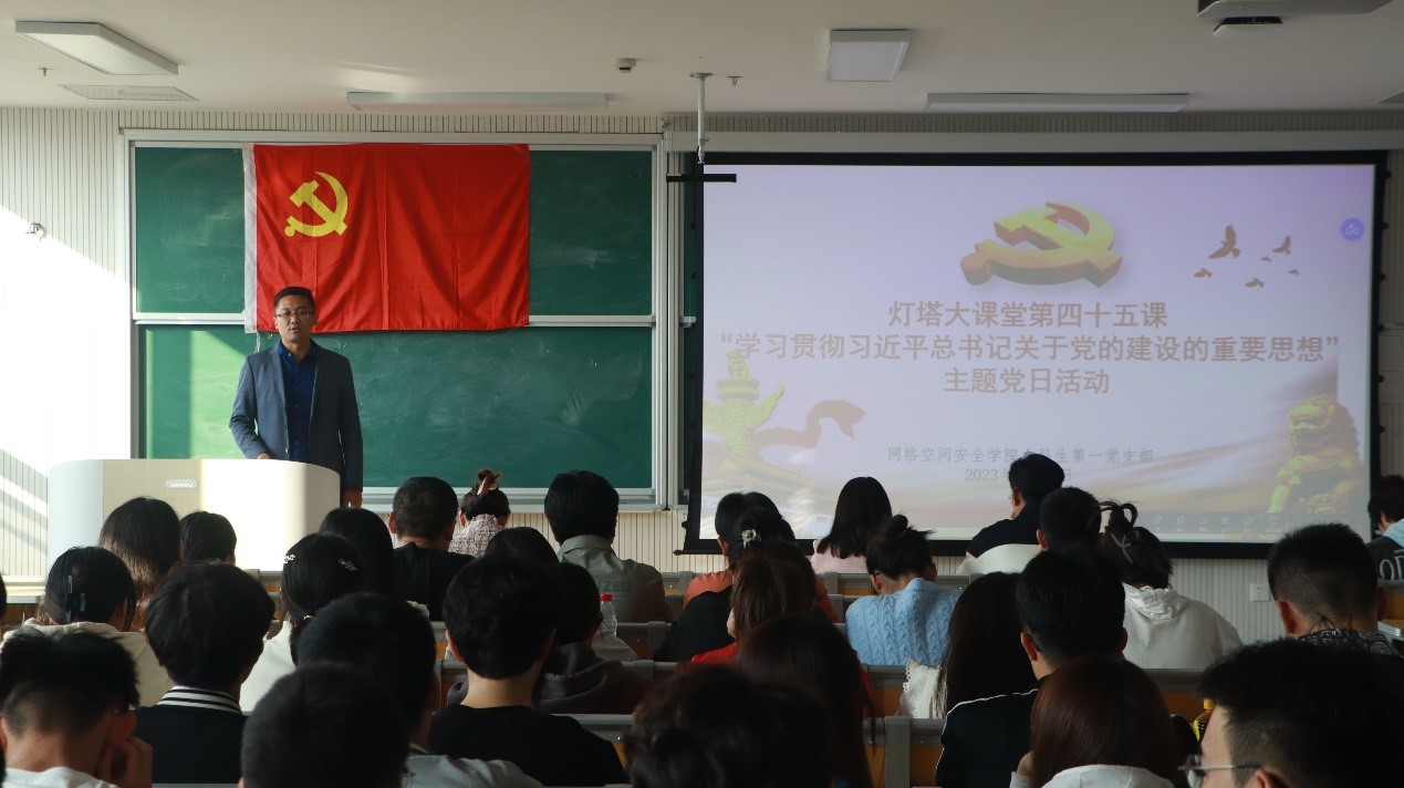 各本科生党支部于格物楼B218开展灯塔大课堂第四十五课“学习贯彻习近平总书记关于党的建设的重要思想”主题党日活动。本科生各党支部书记分别主持各党支部主题党日活动。
