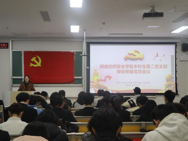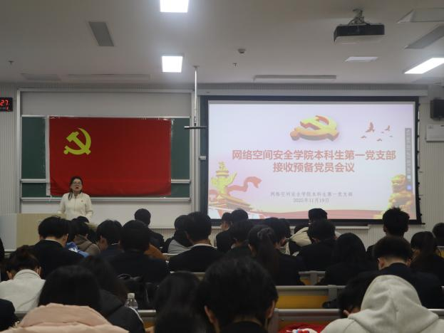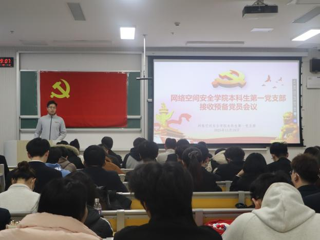 在本科生第一党支部接收预备党员会议中,“第一议题”学习了习近平总书记给中国农业大学、天津大学全体师生的重要回信精神。随后,会议严格按照接收预备党员各项程序进行。全体党员起立奏唱国际歌。党员发展对象依次上台宣读入党志愿书,介绍了自己的学习经历、个人成就以及对未来的规划,充分表达了对加入中国共产党的坚定决心和殷切期盼。入党介绍人对党员发展对象的情况逐一进行介绍,并对是否允许入党表明意见。经过无记名投票,一致同意接收各位党员发展对象为中共预备党员。本科生第二党支部、本科生第三党支部严格按照接收预备党员各项程序分别召开了会议。
