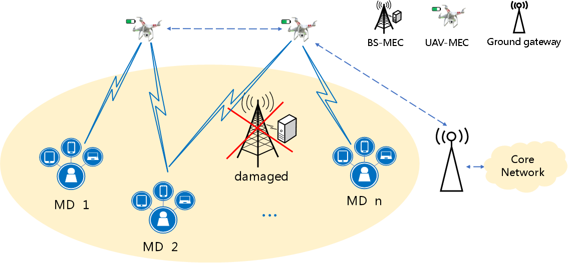 现有的移动边缘计算(Mobile Edge Computing, MEC)技术无法在有限的基础设施下有效运行,为应对自然灾害破坏边缘服务器的情况,研究了多无人机辅助MEC系统的智能卸载问题。研究分为两步,第一步是以降低系统总能耗为目标,通过服务器选择博弈(Server Selection Game-Theoretic, SSGT)算法完成预卸载,确定任务卸载目的地。第二步是利用资源定价卸载激励机制,考虑无人机的能耗和移动用户的卸载意愿,建立Stackelberg博弈的交互模型,并通过多轮迭代博弈(Multi-Round Iterative Game, MRIG)算法实现了边缘服务器和移动用户效用权衡的最优解。最后,本文通过仿真实验证明了SSGT算法的有效性和MRIG算法的优越性。