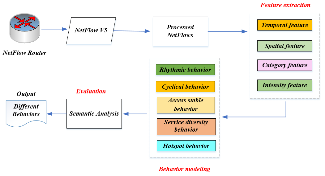 论文分析海量测量数据的行为模式,从时间、空间、类别和强度四个维度刻画IP地址行为特征集合,即:节律性行为、周期性行为、稳定性行为和热点行为。实验结果表明,刻画的IP地址行为不但可以发现具有相似行为特征的IP群,还可以用于恶意行为模式的发现,IP流量行为可以从终端用户的访问关系角度进行确定。