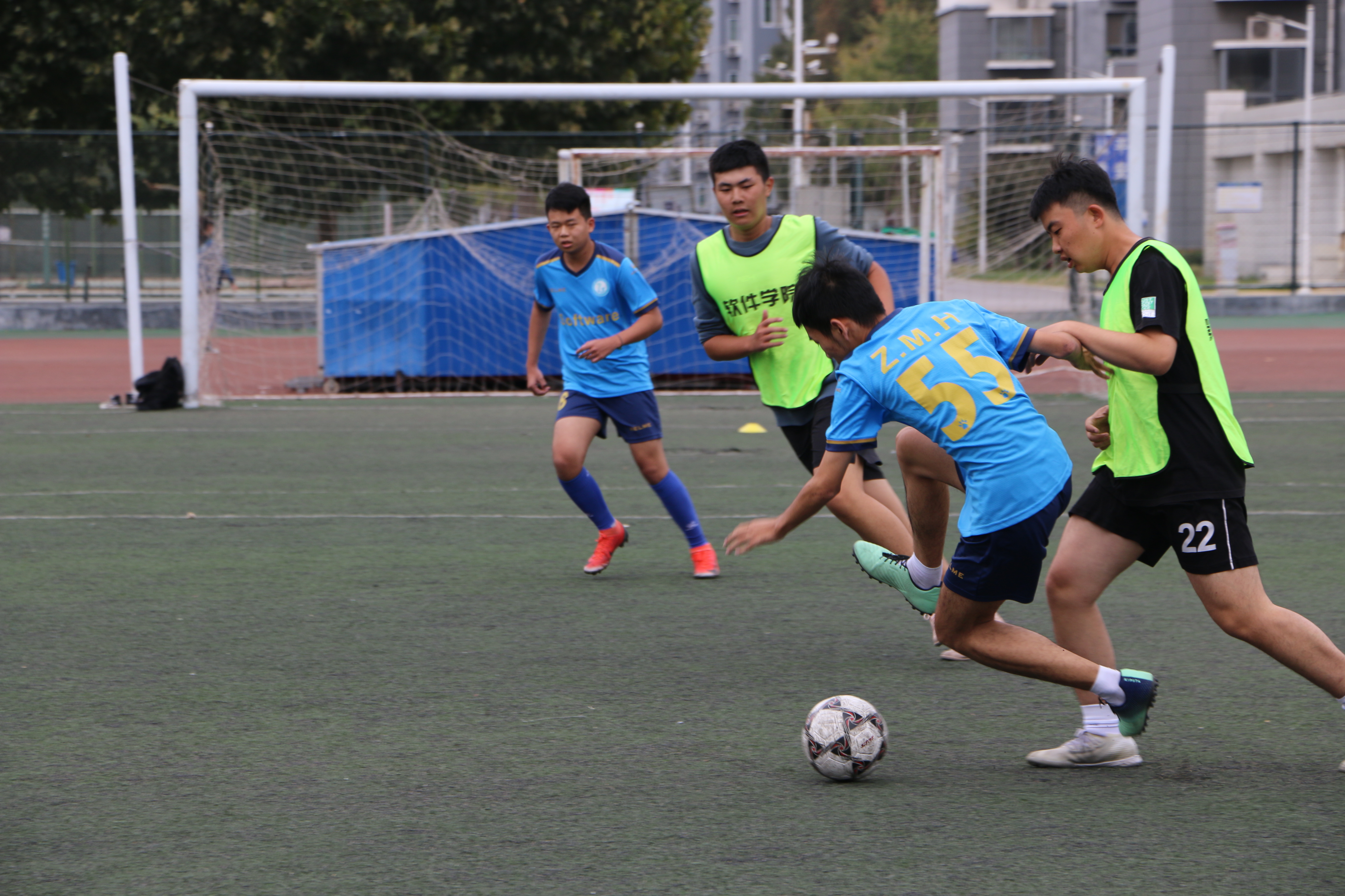 比赛开始前,队员们斗志昂扬、蓄势待发,天气虽然寒冷,但他们的激情却丝毫不减,积极热身,时刻迎接比赛。随着裁判的一声哨响,队员们热血沸腾、全力以赴,发起猛烈攻击,双方都毫不示弱,打出了精彩绝伦的比赛,呼应此起彼伏。正当热情高涨的观众沉浸在比赛中时,一阵哨声突然袭来,比赛就此落下帷幕。最终,软件工程三班以4:0的比分战胜软件工程二班,19级联队以2:0的比分战胜软件工程一班。2020级新生为我们奉上了一场精彩的足球盛宴,让我们看到了他们的风采,他们的激情,与他们精诚协作的团队精神。