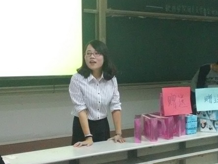 晚上七点,讲座正式开始。讲座的主要内容分为“日常护肤”与“皮肤修复”两部分。主讲高化妆师首先耐心详细地介绍了护肤常识,并进行了有奖问答。礼品的派送让讲座现场气氛高涨,同学们在学习知识的同时深切感受到了护肤的魅力。接下来,高化妆师结合身边实例,用生动幽默的语言介绍了几种典型的皮肤问题,并现场进行了皮肤诊断。同学们也主动地参与到活动中去,积极与高化妆师学习交流,展现了蓬勃向上的精神面貌。
