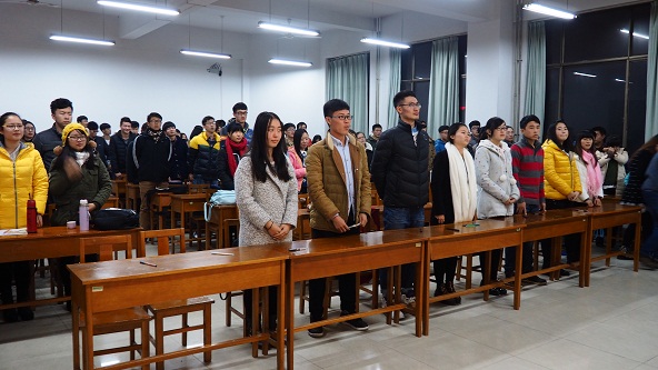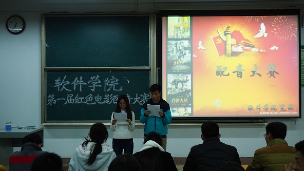 业余党校举办的第一届红色电影配音大赛在综合楼303教室拉开帷幕。此次大赛担任评委的有团总支副书记卢锡蓉、范鑫玉,学生会主席刘孝迎,副主席李俊波、何梦菡,组织部兼业余党校负责人刘汉磊,学习部部长齐琪琪、孙丽丽。