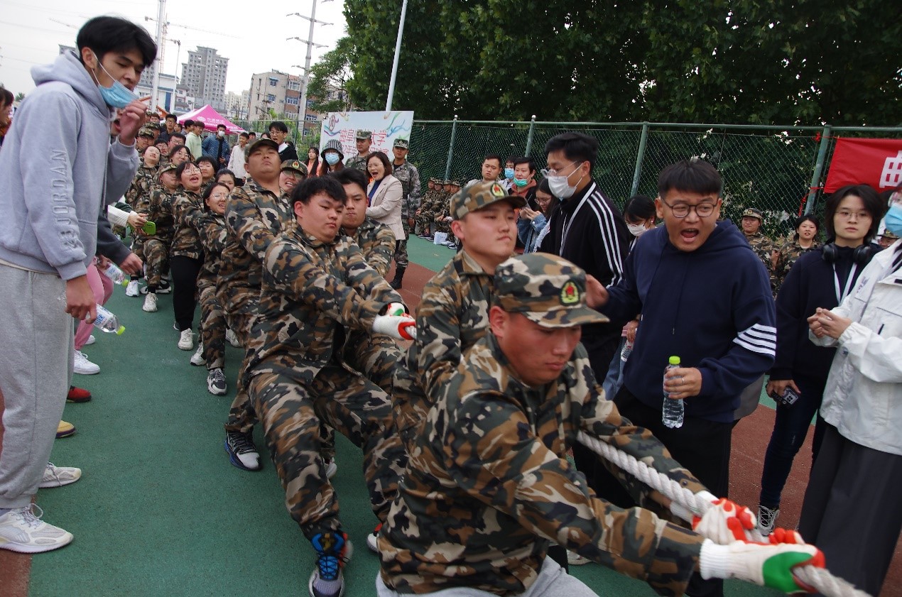 于西操场举行2022级新生军训拔河比赛,富贵险中求