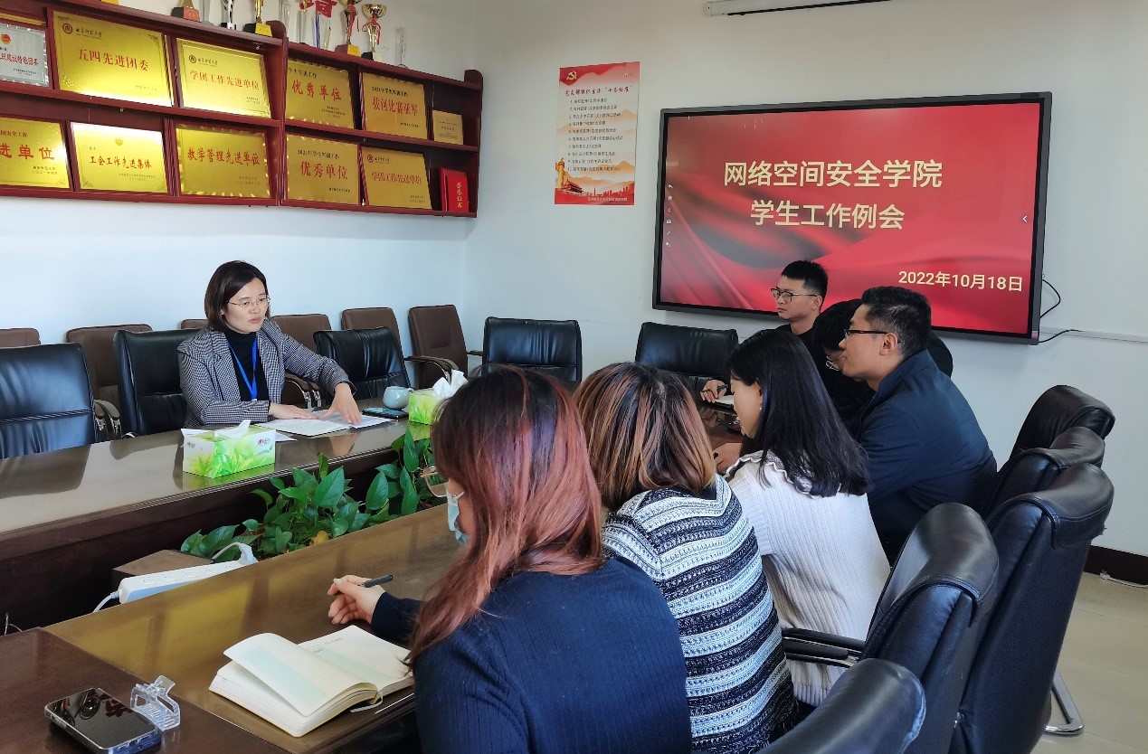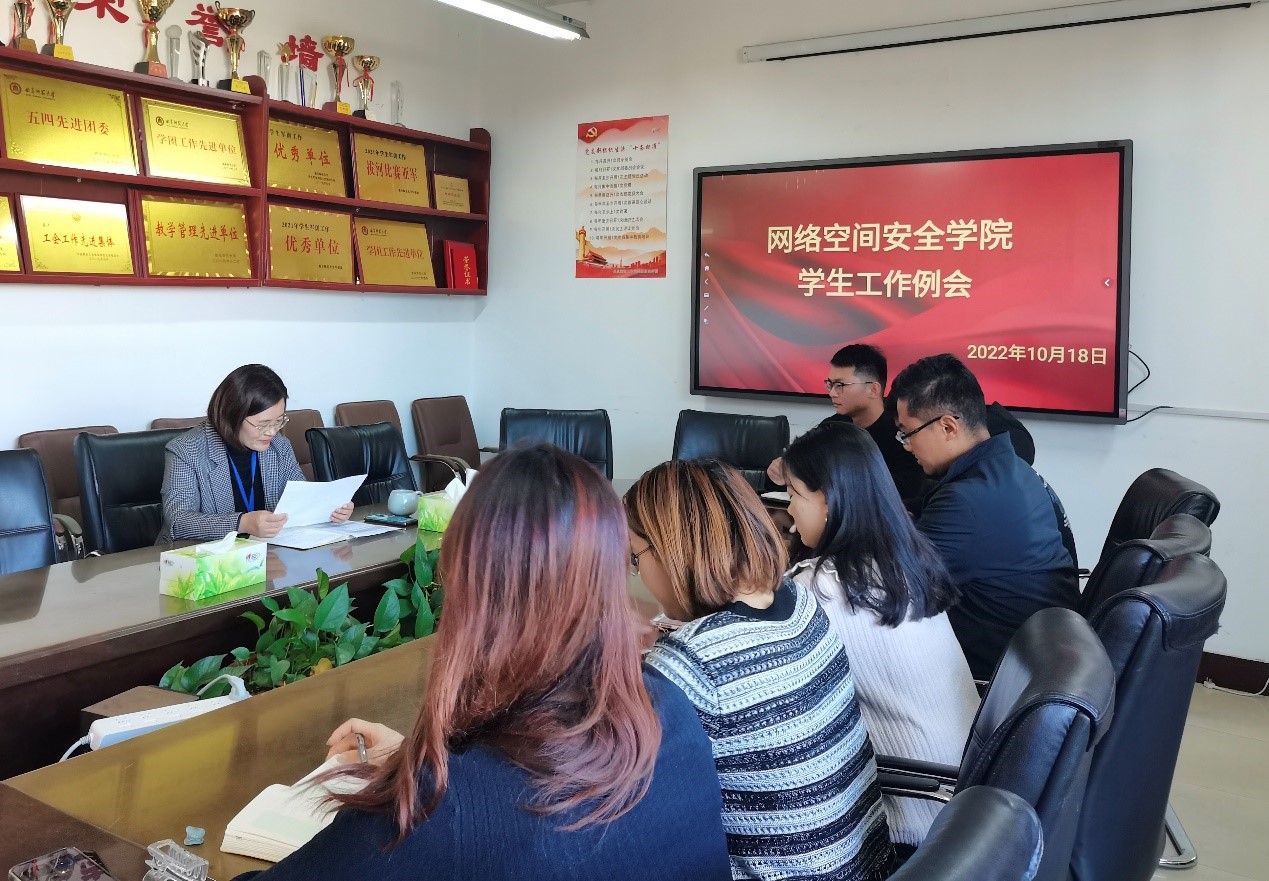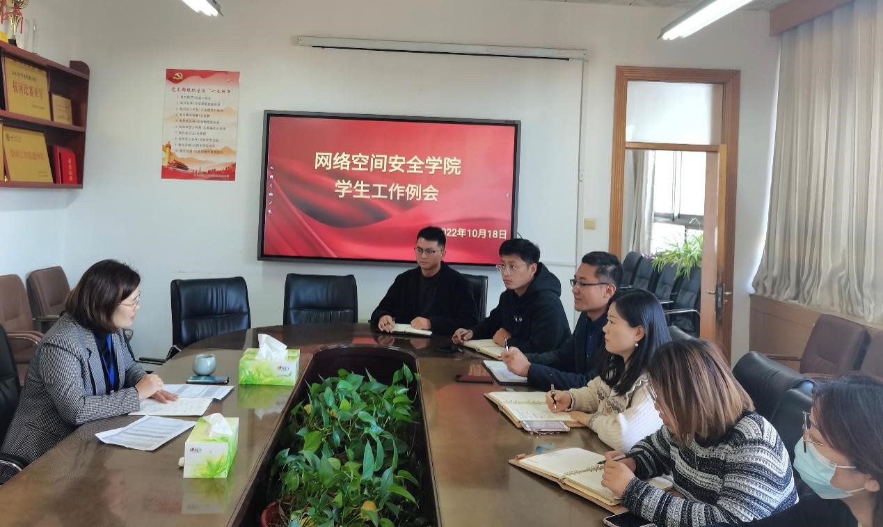 于410会议室召开学生工作例会,党委副书记范瑞红主持会议,团委书记丁允念、辅导员武玉龙、洪亚玲、相青、于媚媛、赵兴卯参加此会议。