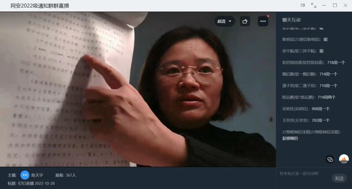 开展校规校纪教育线上主题班会,党委副书记范瑞红、团委书记丁允念、辅导员武玉龙、相青、洪亚玲、于媚媛、赵兴卯主持会议,全体本科生参加。