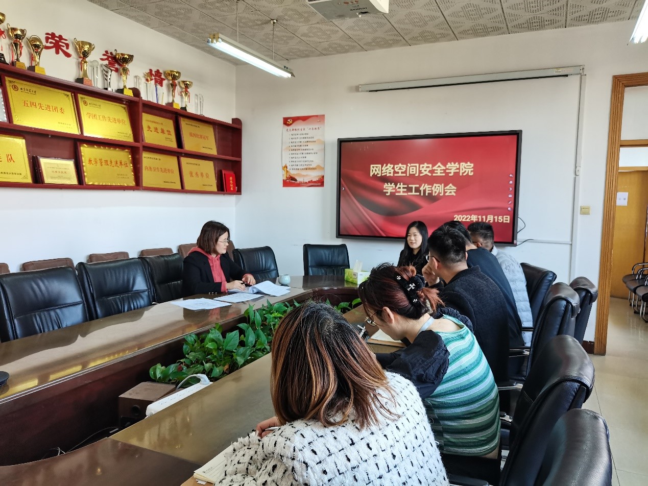 党委副书记范瑞红主持,团委书记丁允念,辅导员武玉龙、相青、洪亚玲、于媚媛、赵兴卯出席本次会议。