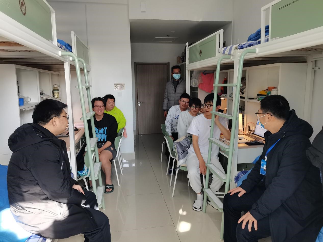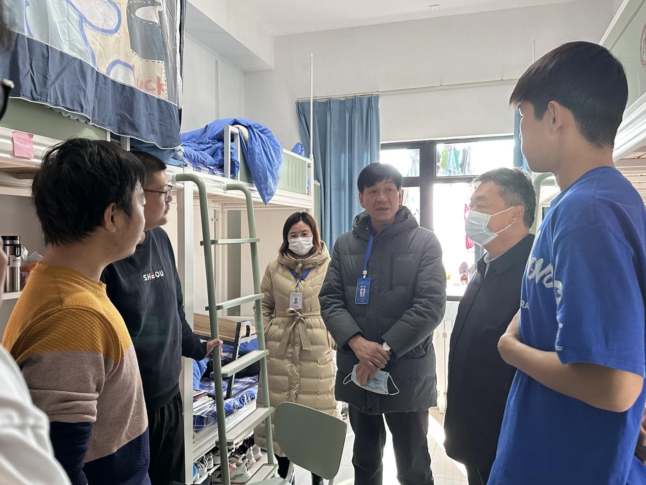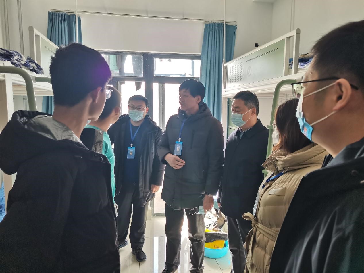 党委书记田云飞,院长王茂励,党委副书记范瑞红,副院长马旭及全体辅导员到西校区四号楼、八号楼走访学生宿舍。