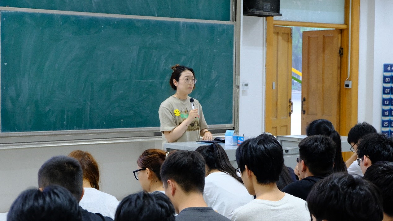 辅导员丁允念,于媚媛担任宣讲人,2021级全体本科生参加会议。