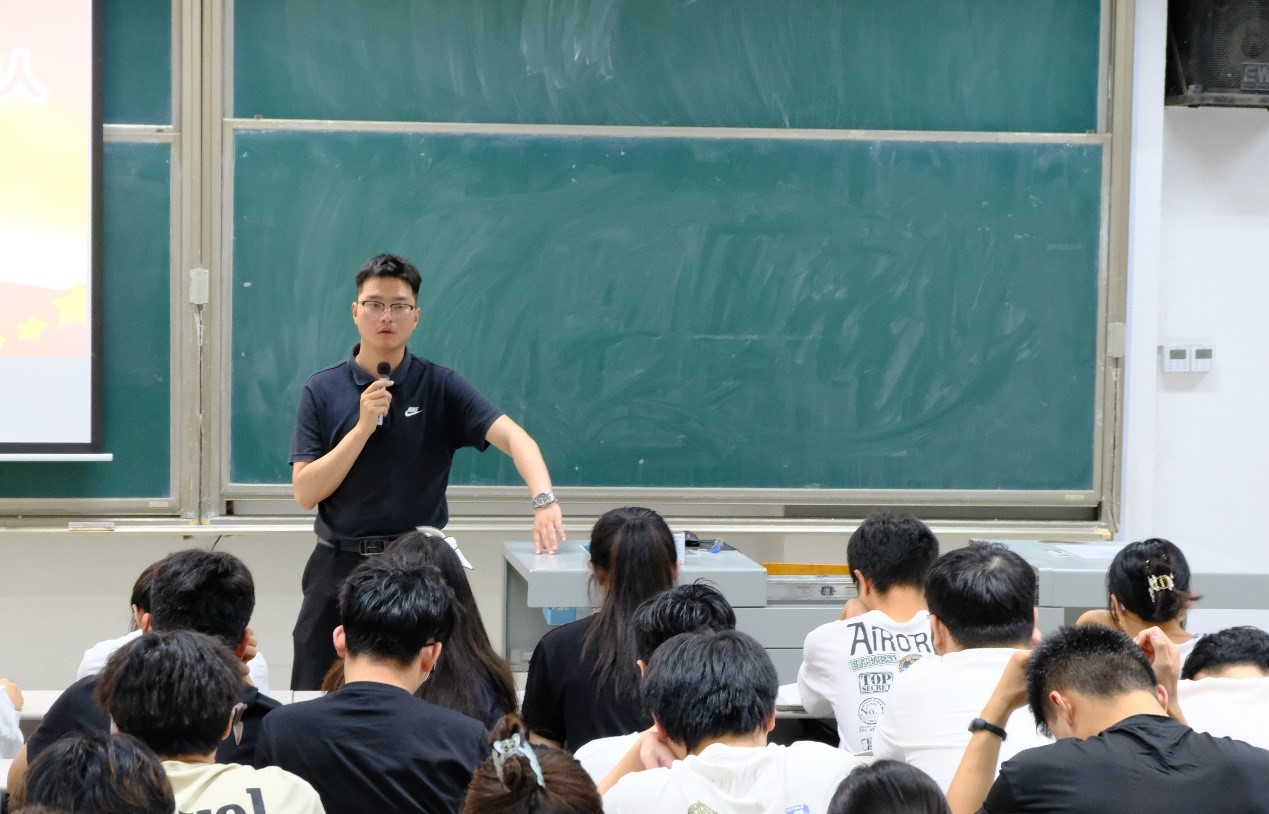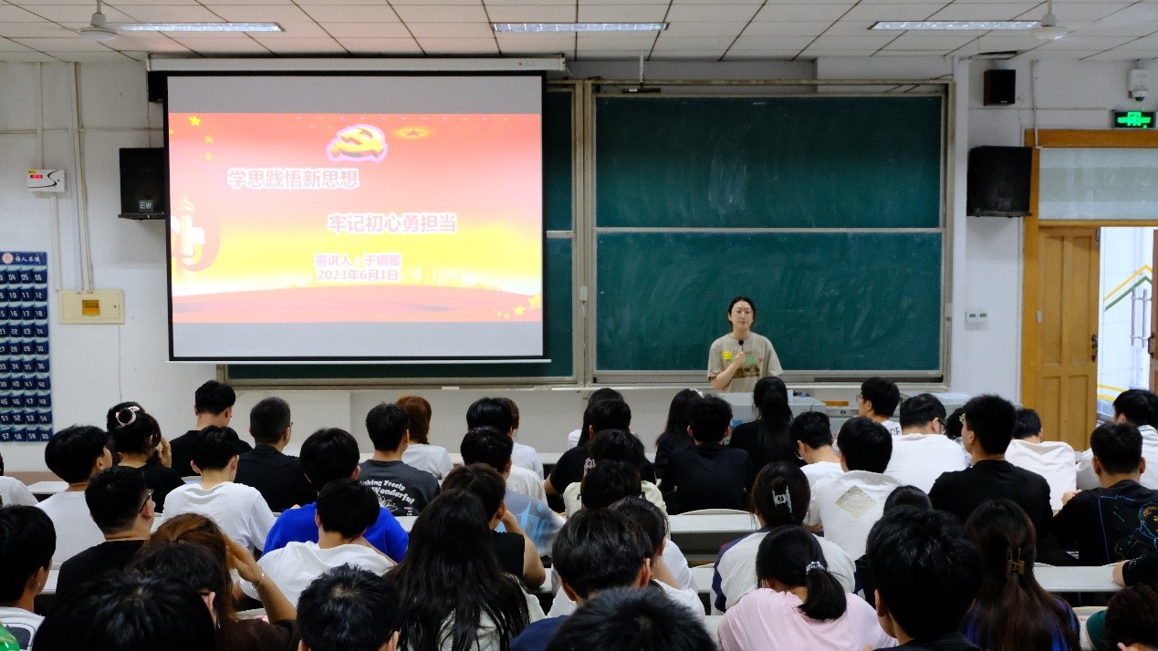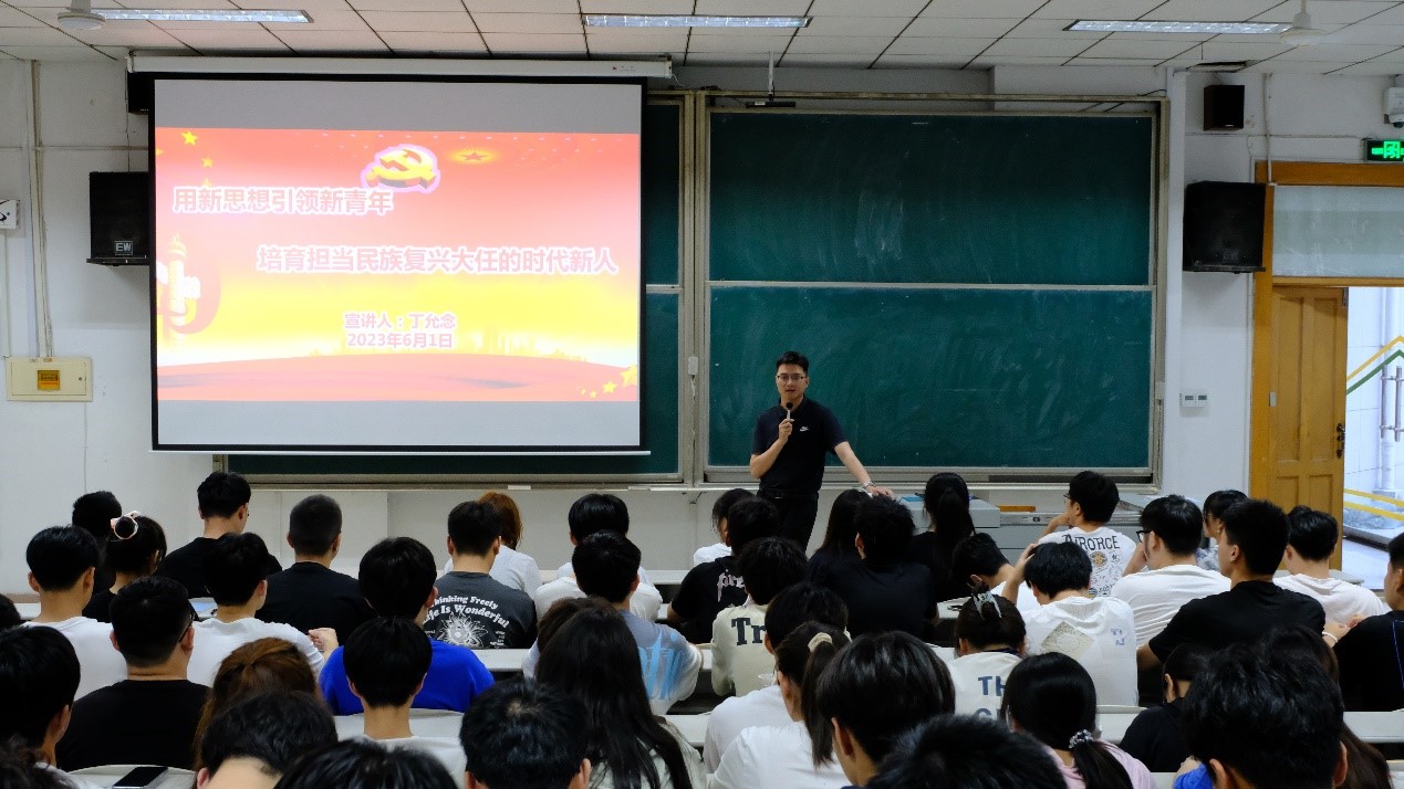 会议伊始,于媚媛以《学思践悟新思想 牢记初心勇担当》为主题对现代社会发展现状进行了梳理和分析,指出了新时代对青年们的特殊需求。她强调,作为新时代的青年,要肩负着历史和时代的责任,需要具备强烈的民族责任感和使命感,发挥巨大潜力,为民族复兴献出自己的力量。随后,丁允念以《新思想引领新青年 培养担当民族复兴大任的时代新人》为主题进行了宣讲,他指出,作为新时代青年学生,肩负着时代赋予的使命,要以梦为马、不负韶华,自觉用习近平新时代中国特色社会主义思想武装头脑,把个人理想追求同民族复兴伟大梦想统一起来,在百年未有之大变局中把握机遇,自信自强、守正创新,努力成为堪当民族复兴大任的时代新人。最后,丁允念进行了总结,他强调,学生应多了解各行业的发展趋势和潜力,探寻自己的优势和未来发展方向,不要盲目跟从他人,更不要被外在的眼光所左右,要做出符合自己情况的决策,将自身的潜力发挥到最大。