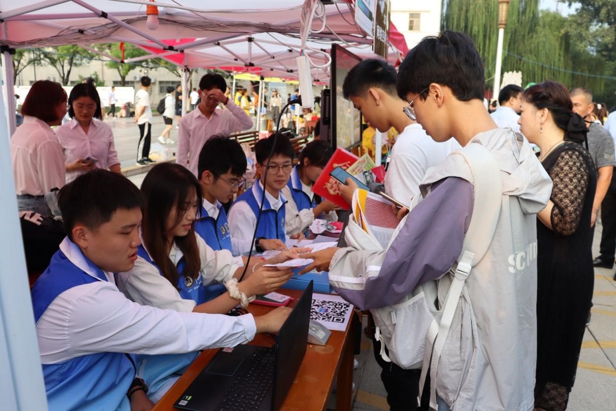 迎新工作在科技楼前与文渊楼同步进行。为确保迎新工作的顺利开展,富贵险中求