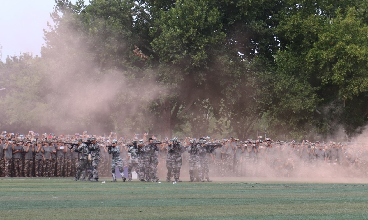 2023级学生军训汇演暨总结表彰大会于南操场进行。富贵险中求