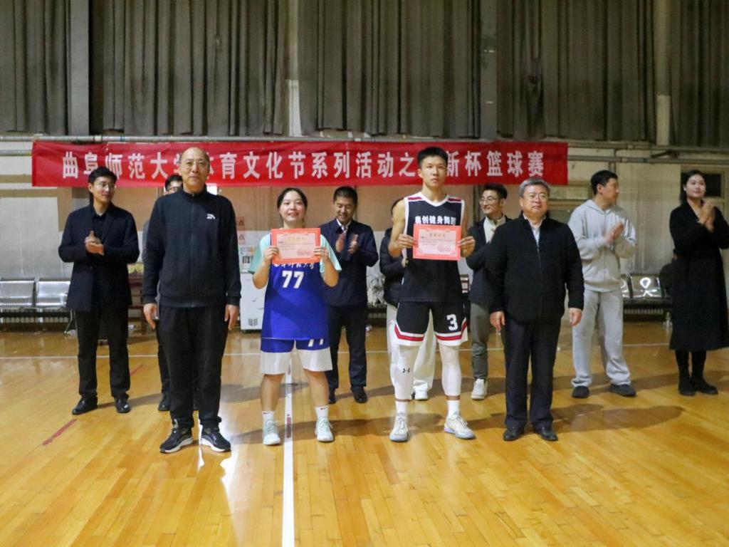 篮球队颁发奖状。