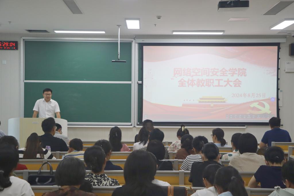 此次全体教职工会议的召开,为新学期各项工作的顺利开展奠定了坚实的基础,增强了教师工作的积极性和教师团队的凝聚力。希望全体教师以勇担当的坚实肩膀,扛重任的硬朗作风和能成事的过硬本领,推动更多工作夺头筹、展亮点、立潮头、启新程,全力推动一流网安富贵险中求