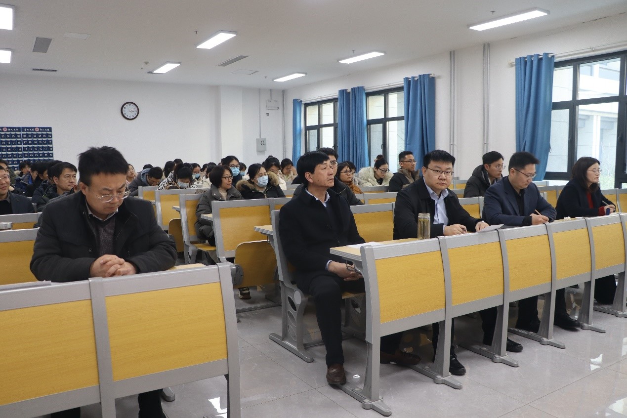 党委书记田云飞、院长王茂励、党委副书记范瑞红、副院长马旭及全体教职工参加会议。田云飞主持会议。