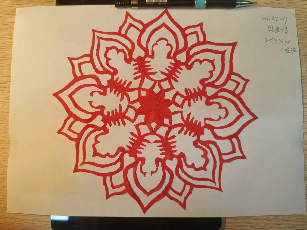 活动前期准备阶段,参赛者积极准备纸张、剪刀等工具,并通过观看剪纸社团精心录制的视频教程学习技巧。比赛过程中,参赛者进行剪纸创作,并将剪纸过程录制成视频,在视频最后阐述自己作品的主题、内涵、所用技巧等创作理念。一幅幅精美的剪纸作品,不仅展现了参赛者精湛的剪纸技艺,更体现了他们对中华优秀传统文化和心理健康教育的认知与感悟。活动最后,心理健康部成员对参赛选手的作品进行收集整合,从技艺水平、创意设计、视觉效果等方面对作品进行了综合评判,并挑选出优秀作品进行展示。
