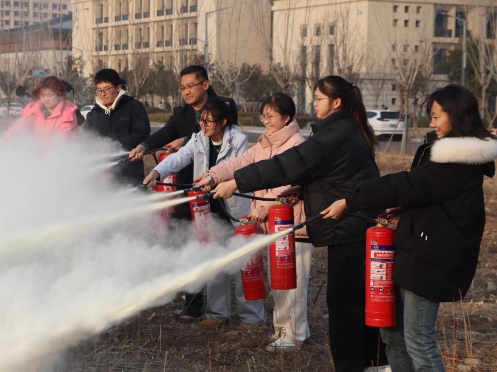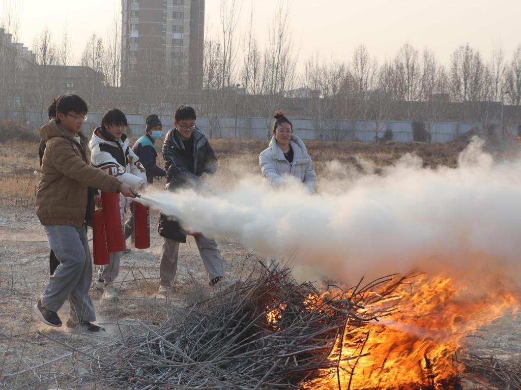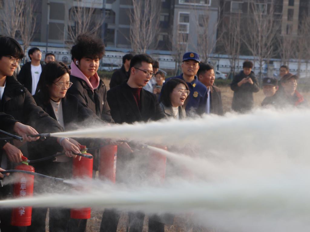活动分为理论培训与实战演练两阶段。在理论培训中,本次特邀了曲阜市消防大队三孔消防救援站站长王磊进行消防安全培训。王磊首先结合高校火灾案例视频,剖析了宿舍违规用电、实验室设备故障等常见隐患的成因,强调辅导员需掌握“隐患识别、初期扑救、疏散引导”三大核心能力。随后,他详细讲解了灭火器“提、拔、握、压”操作规范、消火栓水带快速连接技巧及火场浓烟逃生口诀等。室外演练环节,参训人员轮流使用干粉灭火器扑灭火源。专业消防员全程指导动作要领,针对灭火站位角度等细节进行一对一纠正。辅导员们在消防大队指导下严格按照操作要求进行灭火实战,积累知识,圆满完成了本次消防安全技能培训。