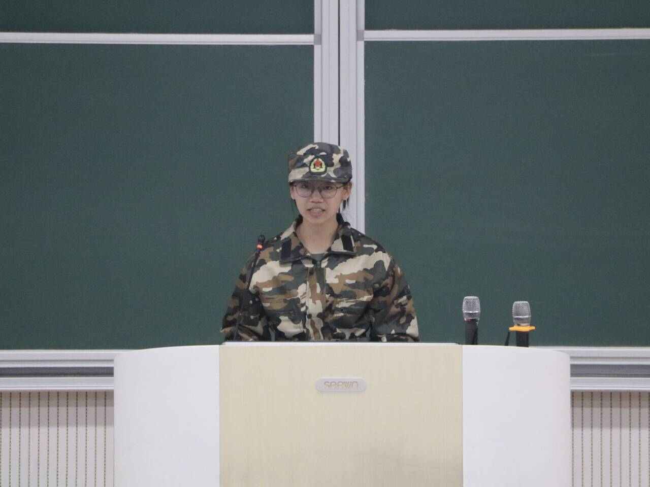 于致知楼B101、B201教室同步召开新生军训动员大会。富贵险中求