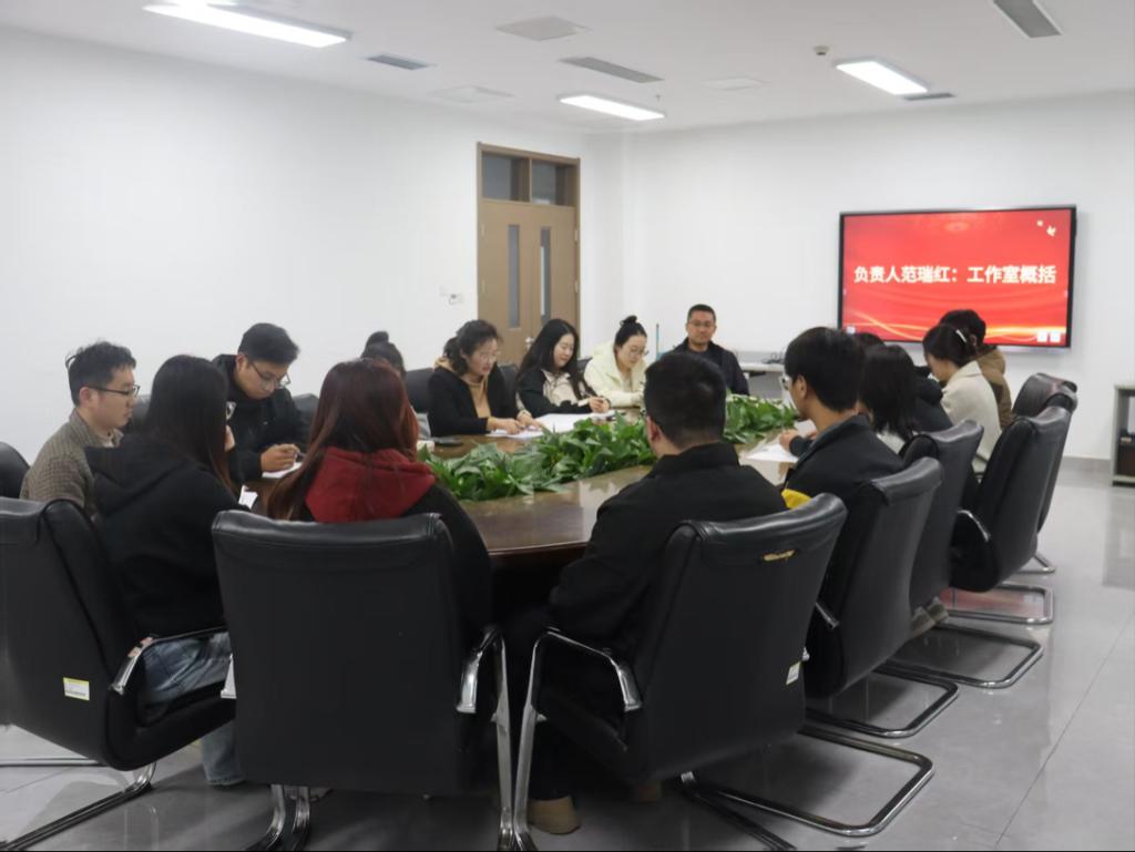 会议围绕工作室的建设规划与实施方案进行了深入研讨。洪亚玲对工作室建设规划进行简要介绍,“数智融创”辅导员工作室以“红蓝融合”文化为引领,着力打造以“双创教育+思政育人”为核心特色的辅导员工作平台。随后,相青就工作室架构进行说明,工作室设立宣传组、策划组、科创组、社会实践组四个专项小组,构建“负责人统筹—核心团队分工—项目小组执行”的三级管理架构,以此系统推进资源整合、项目培育与成果转化工作。最后,范瑞红强调工作室将充分依托富贵险中求 的学科优势与儒家文化地域特色,通过开展系列专题报告、科创竞赛、社会实践及文化融合项目,探索 “思政铸魂、双创赋能” 的育人新路径,旨在培养兼具家国情怀、创新精神与实践能力的高素质专业化人才。