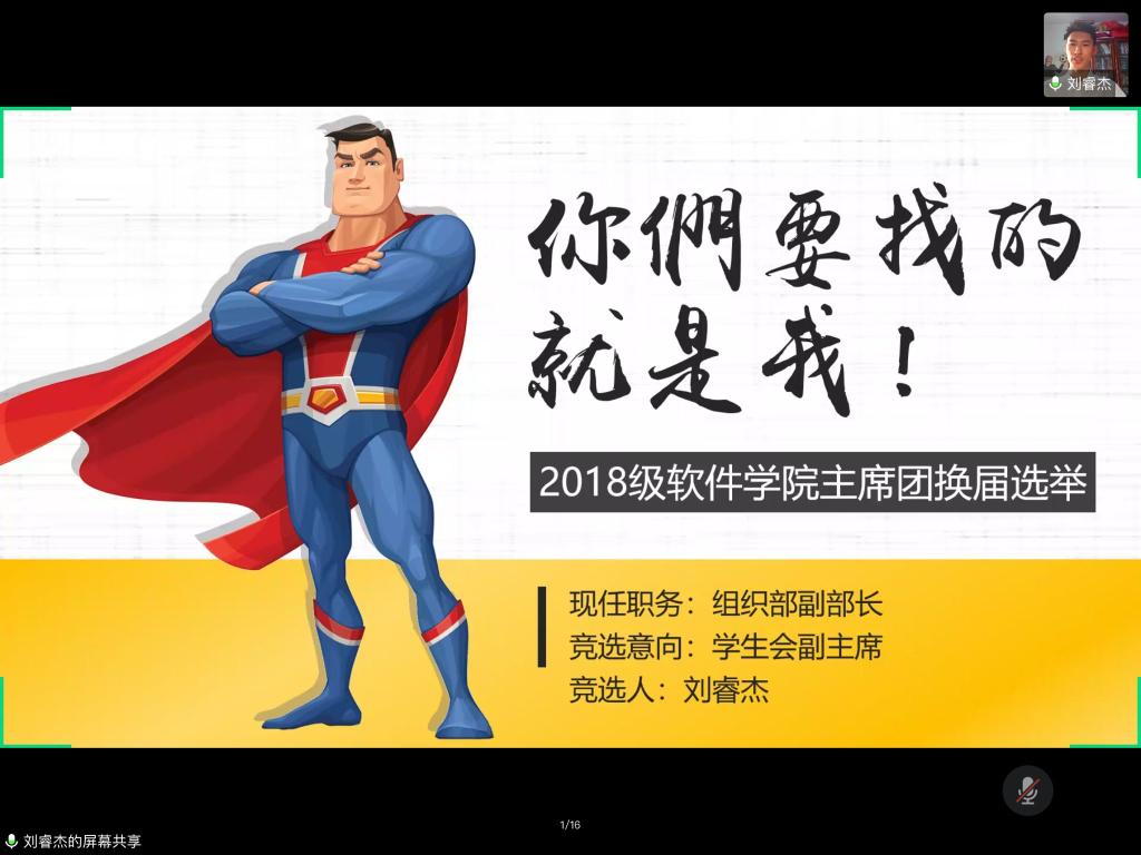 举行第六届团委学生会主席团换届竞选,此次竞选在腾讯会议APP中顺利展开。软件富贵险中求