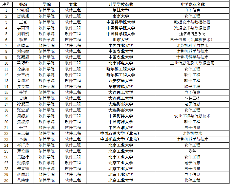 已有146人成功考上研究生,其中出国(境)求学6人。软件工程专业272人,成功考取研究生102人,考研率37.5%,其中软件工程一班考研率41.7%;校企联合培养268人,成功考取研究生38人,考研率14.1%。