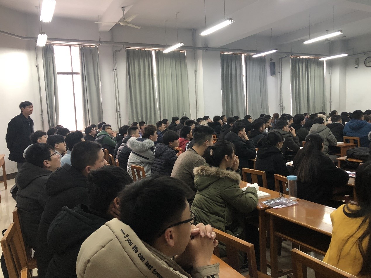党委书记田云飞在党委副书记田凯、团委书记范瑞红、辅导员郑凤华的陪同下,到各年级教室察看新学期上课情况。