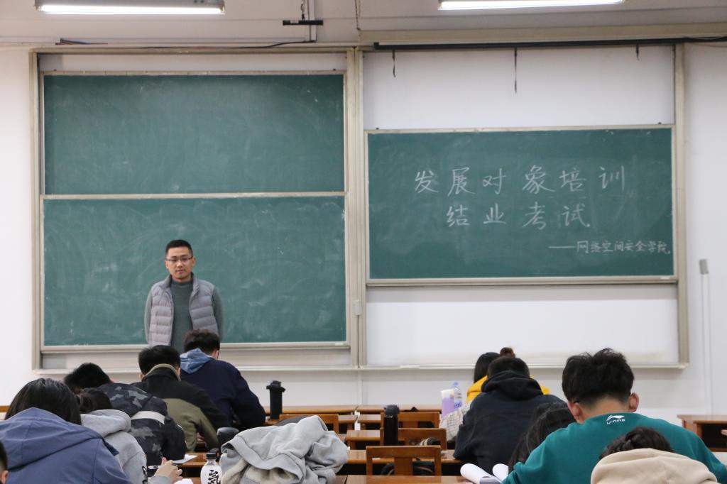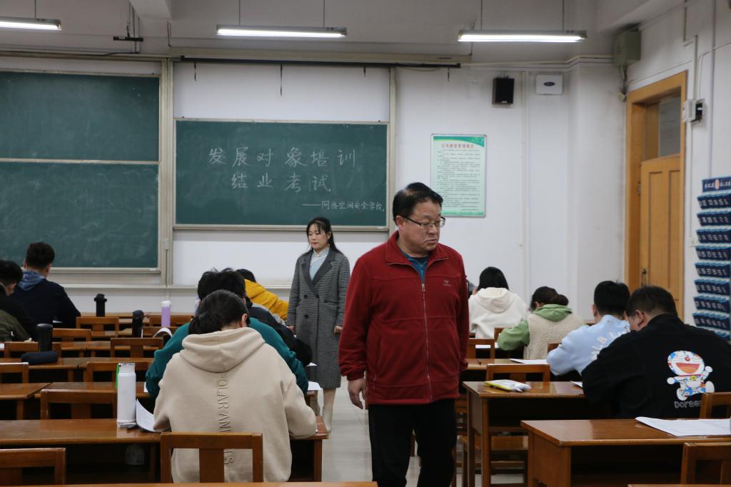 发展对象培训结业考试在综合楼303成功举办。辅导员武玉龙、洪亚玲监考,党委副书记田凯、团委书记范瑞红、辅导员丁允念到场巡视。