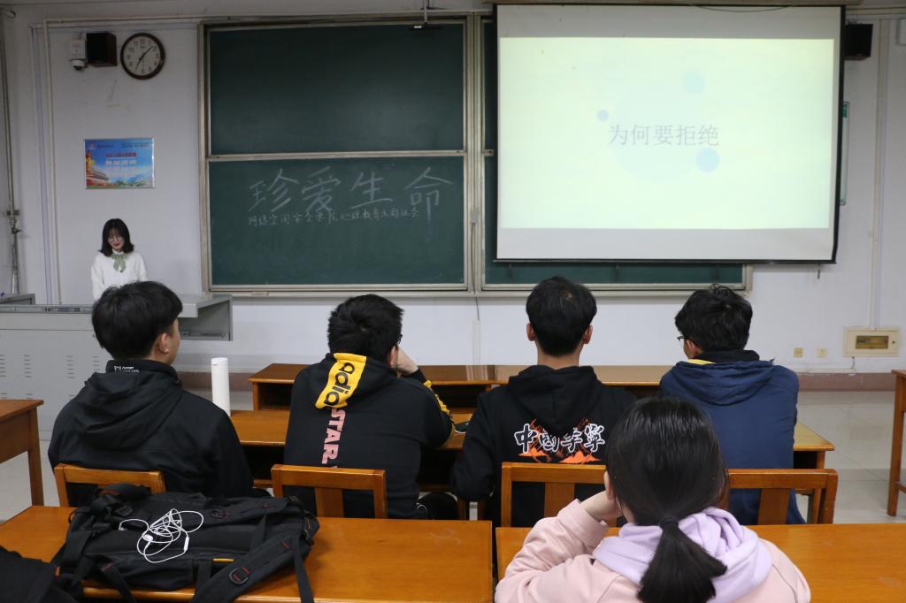 活动中,周玉娇结合文字、图片、视频,对“如何学会合理的拒绝”这一问题进行讲解,运用案例向同学们说明学会拒绝的必要性,并结合自身经历介绍了拒绝的方法。随后孙浩宇从抑郁情绪低落等大学生普遍存在的心理问题入手,分析了出现这些问题的原因,他劝解同学们要积极与他人交流,保持乐观的心态,友善的面对这个世界。卢星辰、祁蓉依次上台分享了自己的大学生活经历,并针对同学们所提出的问题做出了回答。王宏祥鼓励说道:心理健康问题不容小觑,在日常的生活中,如果有不良情绪可以通过合理的方法宣泄,随时保持积极向上的心态。