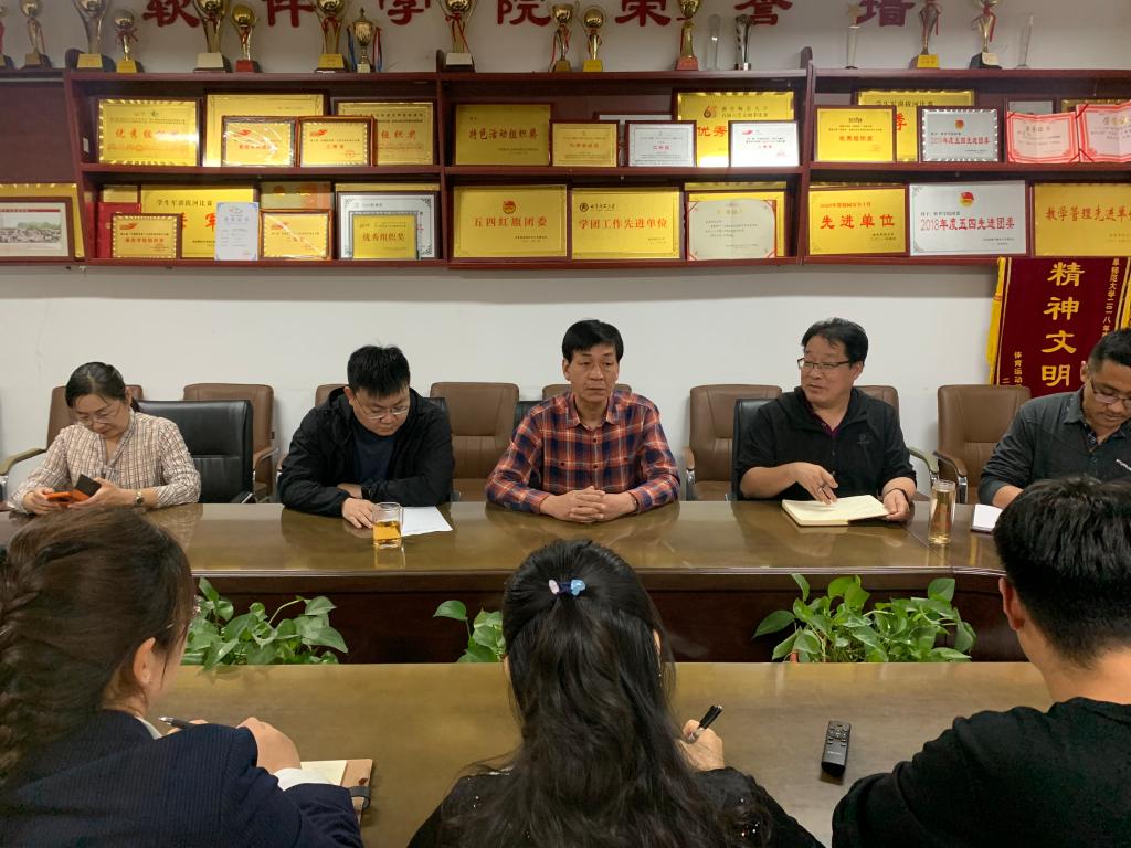 在会议室召开文艺汇演协调会议。会议由党委书记田云飞主持,院长王茂励、党委副书记田凯、团委书记范瑞红、刘新老师、辅导员洪亚玲、武玉龙、丁允念以及第七届主席团成员、文艺部部长参加此次会议。