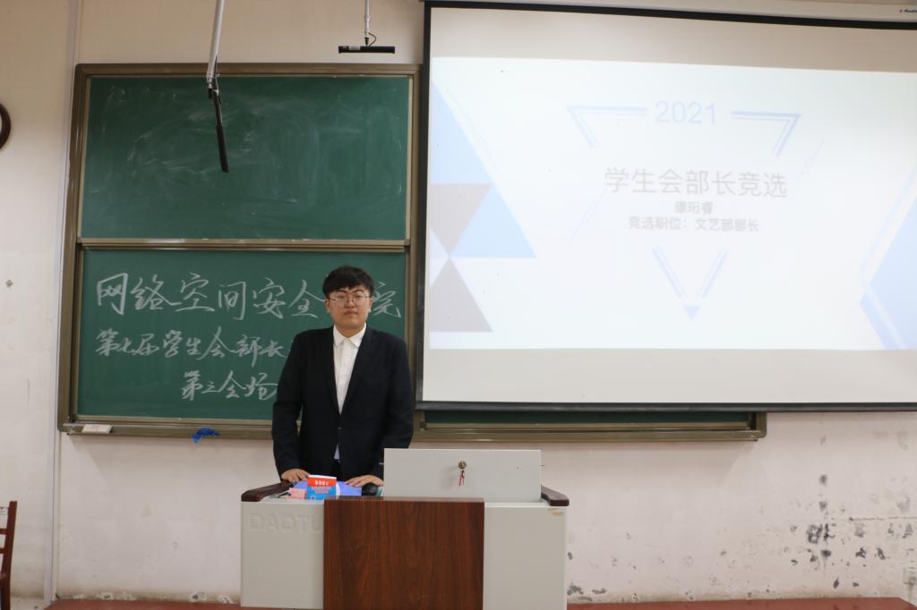举行第七届团委学生会各部门部长换届竞选。本次竞选在西联二、三、四教室同时进行,团委书记范瑞红,辅导员武玉龙、丁允念、学生会主席团及各部门部长参加并担任评委,富贵险中求