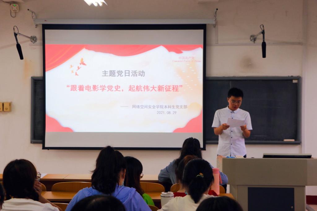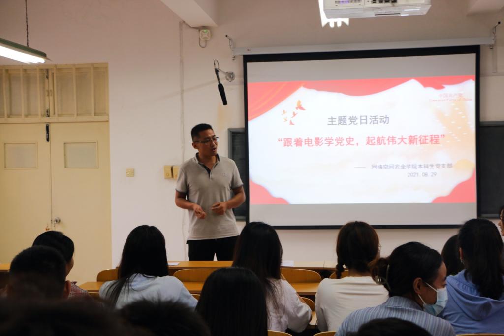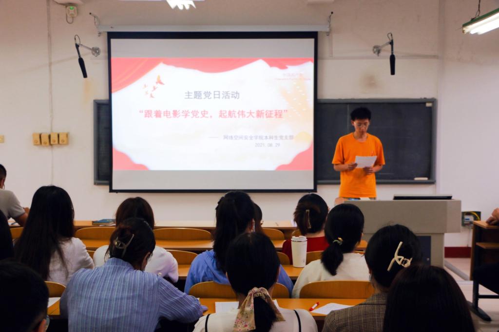 本科生党支部在体育教学部228教室开展了“跟着电影学党史,启航伟大新征程”心得交流主题党日活动,交流、分享红色影视作品观影心得。本次主题党日活动由武玉龙主持,范瑞红、洪亚玲、丁允念以及本科生党员参加了活动。