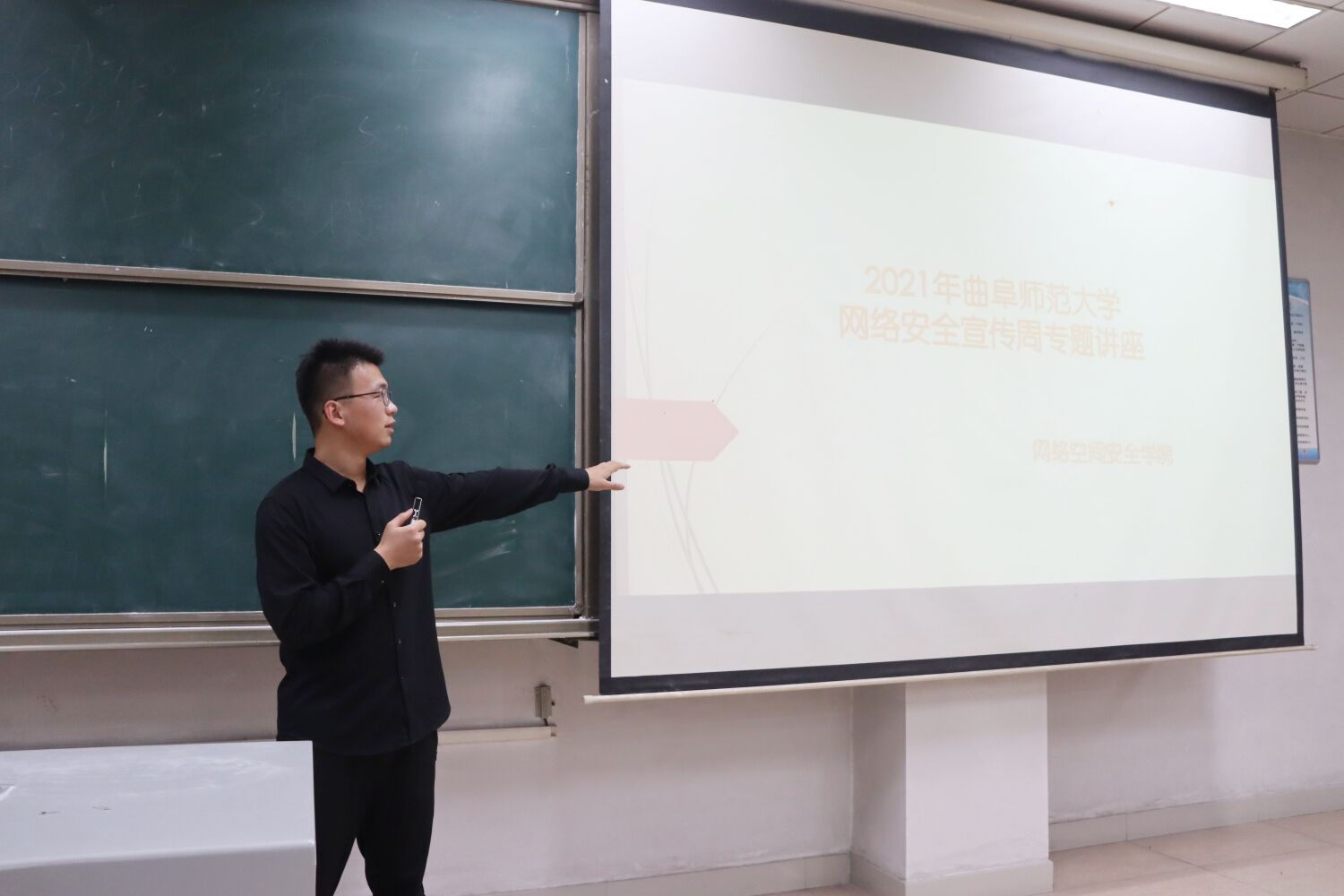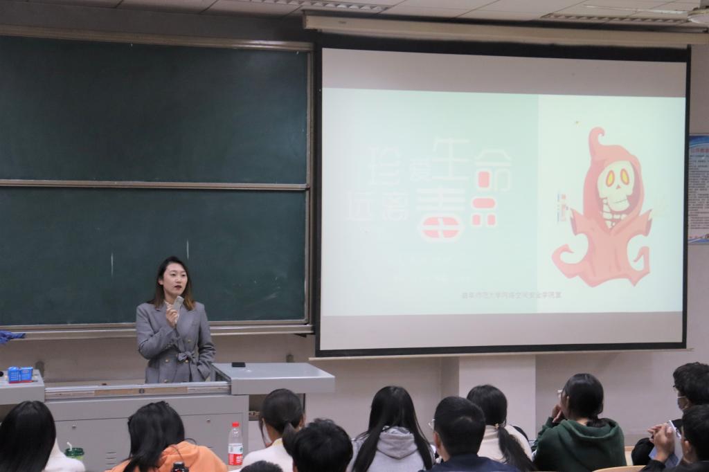 于实验中心A409、A413举行了网络安全专题讲座,辅导员丁允念、于媚媛担任主讲,2021级全体学生参加本次讲座。