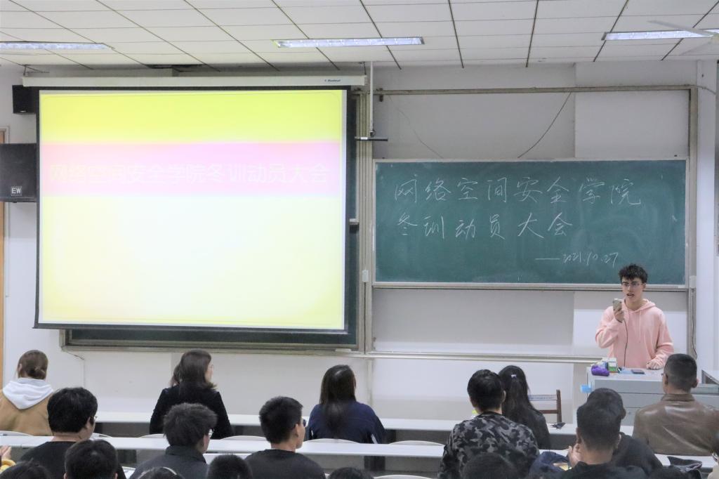 于综合楼301教室召开冬训动员大会,党委副书记范瑞红,辅导员丁允念、洪亚玲、武玉龙、于媚媛、相青以及21级新生参加本次动员大会。