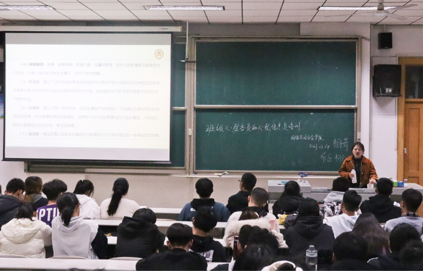 此次培训围绕“心理健康教育“为中心展开,相青从心理委员和心理信息员的职责出发,向同学们讲述了大学生常见心理问题以及应对原则和处理方法。为了达到更好的培训效果,相青结合实例向同学们分析了一些常见心理疾病的特点,并对如何判断心理疾病做出了解答,呼吁大家要关注、关爱身边同学,切勿随意贴标签,不要盲目听从无根据的建议。最后,相青强调了心理委员和心理信息员职责的重要性,鼓励同学们要把最真实的想法说出来,用有效的方法处理自身情绪。