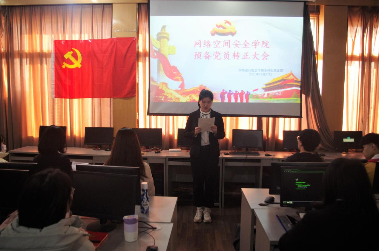 本科生党支部预备党员转正大会按照党章规定的程序逐一进行,付江、邵心茹、王燕、苏靖斐等14名预备党员先后宣读转正申请书,向党组织汇报在预备期间的表现以及思想、学习、工作情况。范瑞红依次介绍了14名预备党员在预备期间的表现情况和意见,参会党员进行充分的党内讨论后,采取无记名投票方式进行表决,王一宁、秦素、秦承斌、刘雪涵分别负责计票和检票工作。经统计,14名预备党员全票通过。范瑞红对14名预备党员表示祝贺,希望这14名同志以此为契机,进一步加强自身思想学习,充分发挥一名党员同志的模范带头作用。