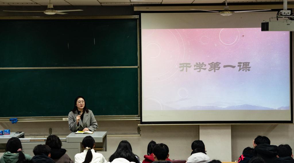 班会主要从安全教育、爱国主义教育、思想政治教育三个方面展开。首先,丁允念着重向同学们强调了学风建设的重要性,同时要求同学们要端正态度,遵守校规校纪,积极调整心态,全身心地投入到新学期的学习中。随后,于媚媛强调大学生要自觉加强体育锻炼,提升身体素质,养成良好的卫生习惯和生活习惯,增强自身免疫力,做德智体美劳全面发展的社会主义合格建设者和可靠接班人。