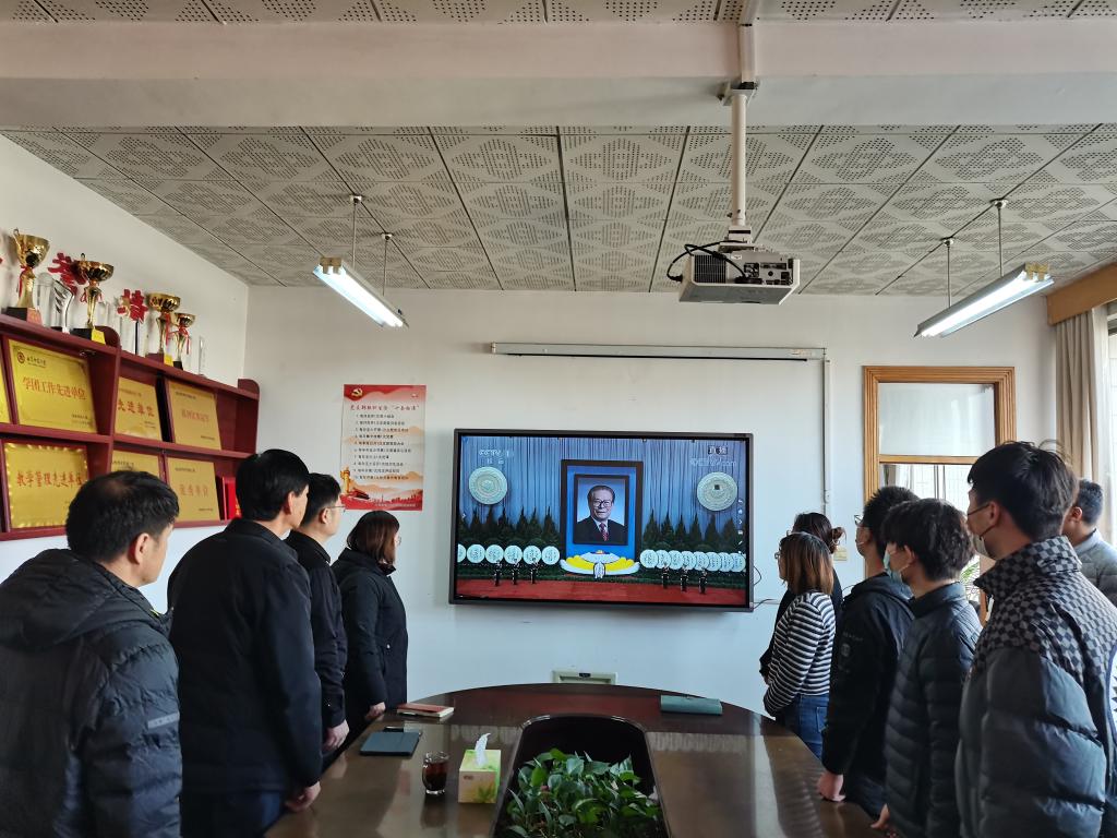 领导班子以及全体辅导员收听收看。网安全体师生怀着沉痛的心情,深切缅怀悼念江泽民同志的丰功伟绩和崇高风范。