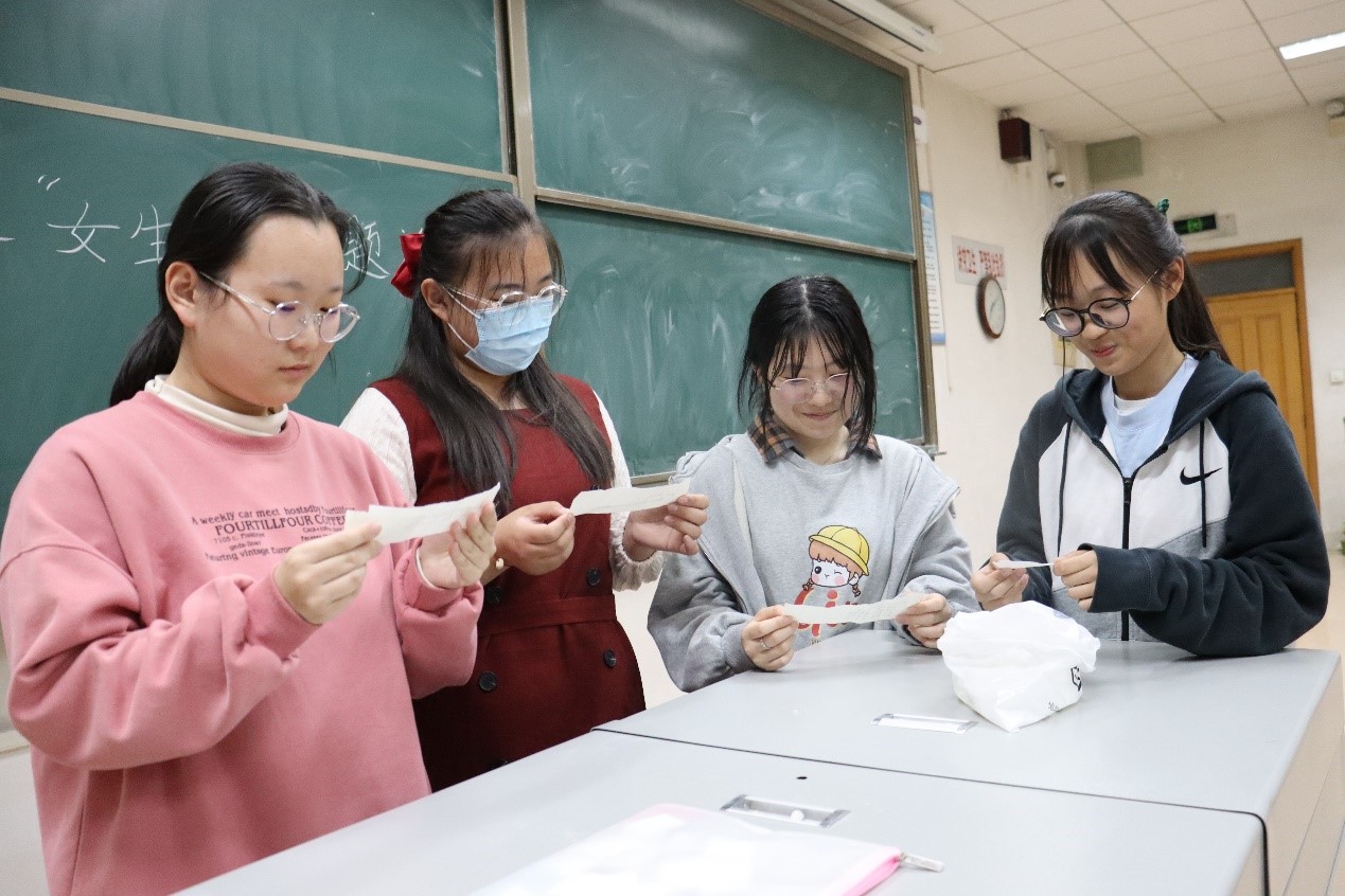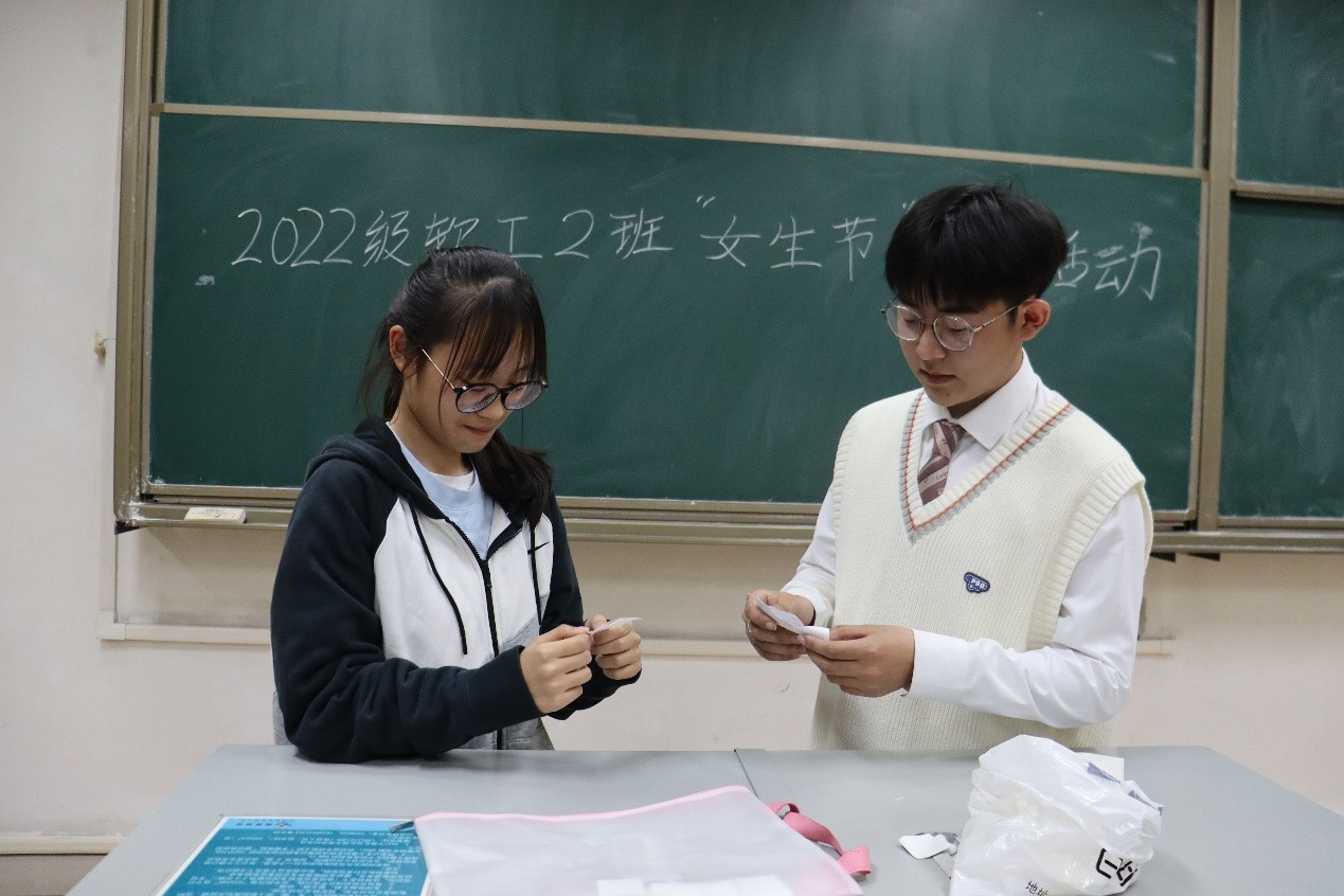 活动伊始,现场的气氛十分热烈,同学们也都情绪高涨,纷纷踊跃参加。活动分为三个环节:首先,女生将自己写下的心愿放到心愿盒中,各位男生分别从心愿盒中随机抽取心愿,并帮助她完成,男生写下祝福语放入盒中后由各位女生抽取,收到祝福的女生纷纷表示此次活动对自己意义非凡。本次活动为所有同学都留下了一段温馨美好“女生节”回忆。在轻松欢乐的氛围中,“女生节”主题活动落下帷幕。