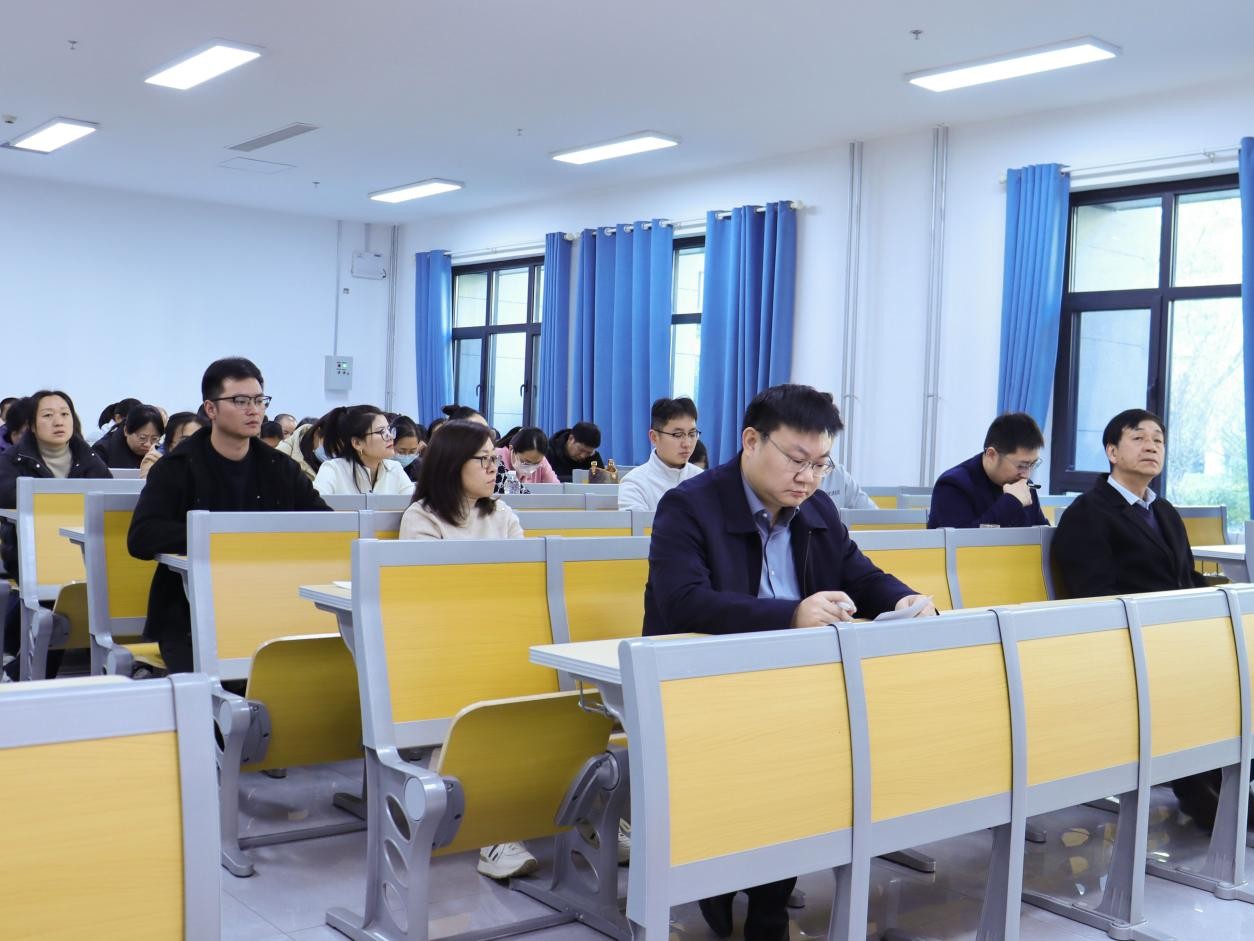 政治理论学习会议暨书记讲党课于格物楼B106教室顺利举行。党委书记田云飞担任主讲人,党委副书记范瑞红主持会议,院长王茂励、副院长马旭及全体教职工参加会议。
