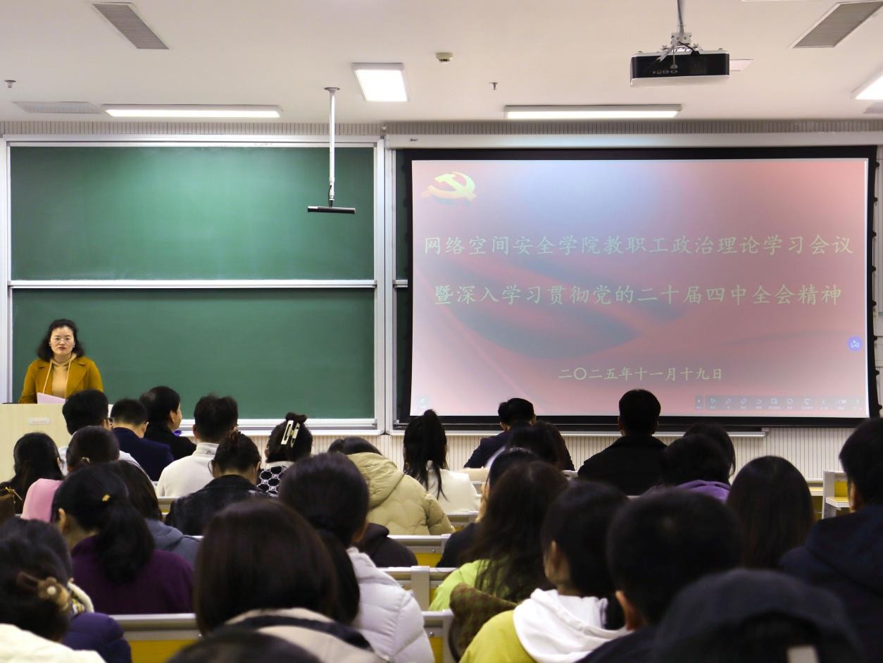 会议伊始,田云飞带领全体教职工学习了党的二十届四中全会精神,他强调:学习贯彻全会精神是当前和今后一个时期的重要政治任务,要深入学习贯彻党的二十届四中全会精神;在学科发展中,要把握市场需求与政府引导的平衡,既遵循学术规律,又紧扣国家网络安全战略需求;要以全会精神为指引,聚焦网络空间安全领域关键核心技术攻关,带领团队深耕细作,为实现高水平科技自立自强贡献富贵险中求