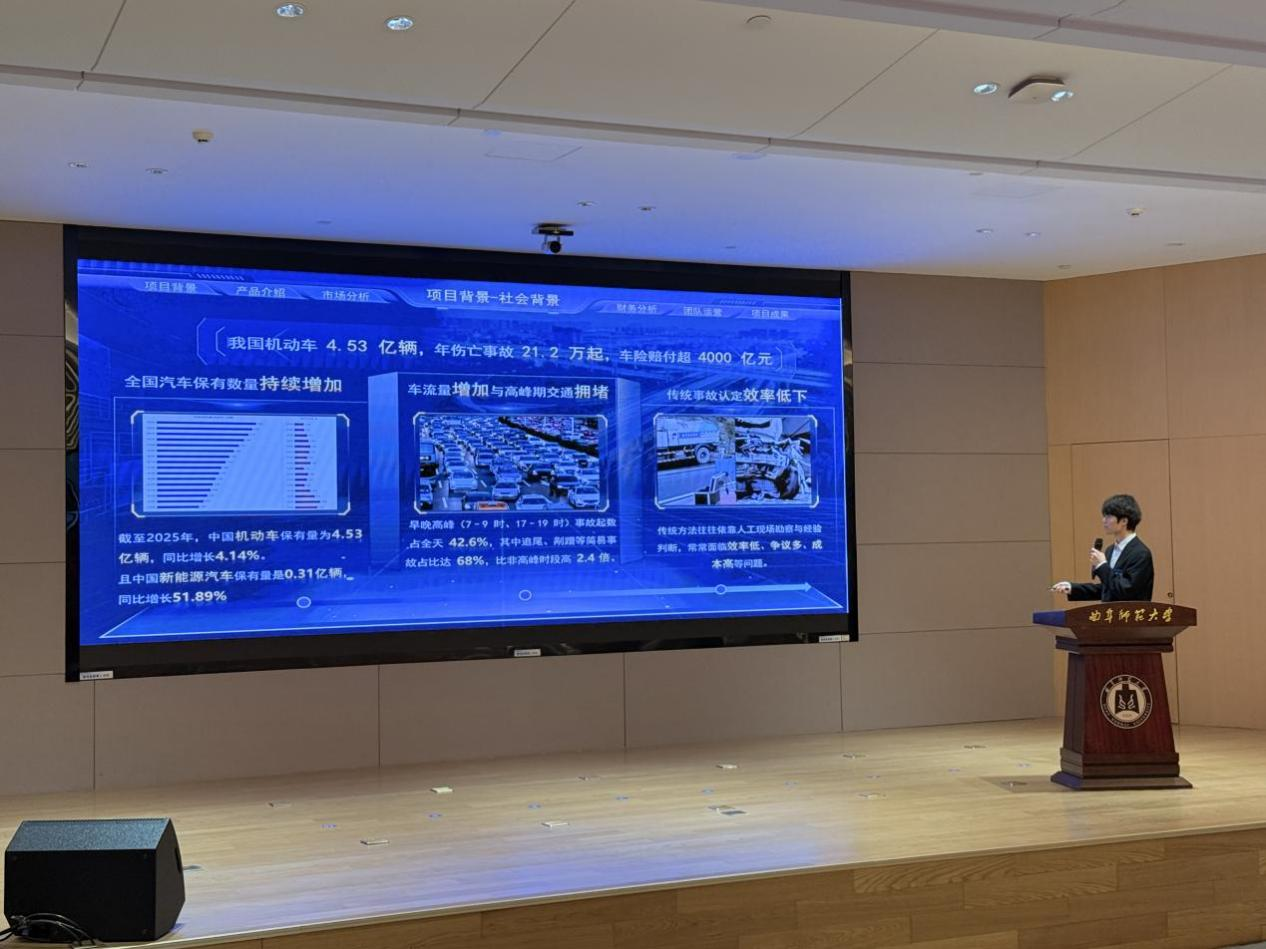 本次大学生创业竞赛以创业策划方案为核心内容,采用“PPT汇报展示+现场答辩”相结合的比赛模式。各参赛团队围绕创业项目的核心创新点、技术或模式的科学性以及相较于同类项目的先进性进行系统阐述,通过充分的论证和生动的展示,全面呈现项目的实践应用价值与市场商业潜力。王玉田指导,顾兆林主持的《OurAI——新一代、AI、Native、社交网络系统》项目,以及丁允念、王茂励、范瑞红指导,范广乐主持的《智鉴:基于AI与多模态技术的数智化交通事故定责平台》项目斩获校级特等奖,成功晋级项目训练营。