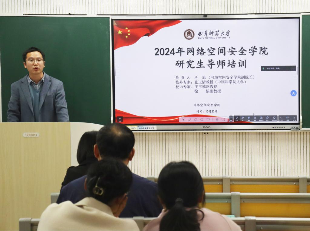 会议采用线上线下同步进行的方式。张玉清教授以其深厚的学术造诣和丰富的指导经验为与会教师带来了精彩的报告。报告中,张玉清教授对当前研究生教育环境进行了全面而深刻的剖析,分享了自己在研究生培养过程中的创新思路与实践经验。他强调,研究生教育不应仅仅局限于知识的传授,更重要的是要激发学生的创新思维,培养其独立研究和解决问题的能力。