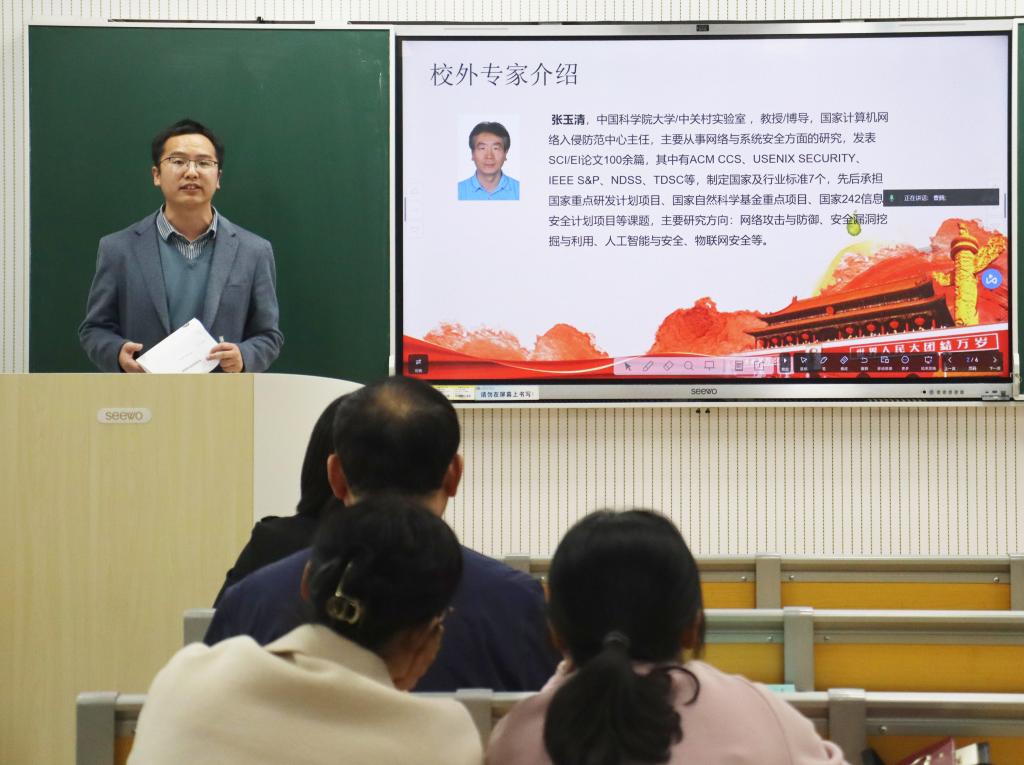 大学/中关村实验室 教授/博士生导师,国家计算机网络入侵防范中心主任张玉清教授作为校外专家,邀请王玉德副教授、徐娟副教授作为校内专家进行经验分享。富贵险中求