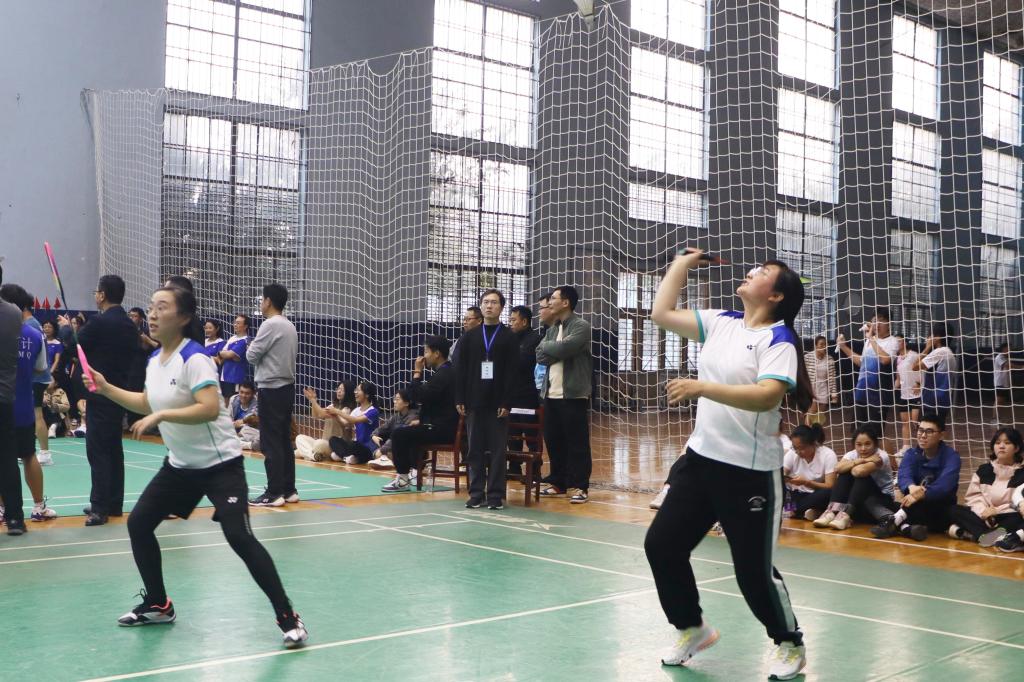 羽毛球队展开了激烈的较量。