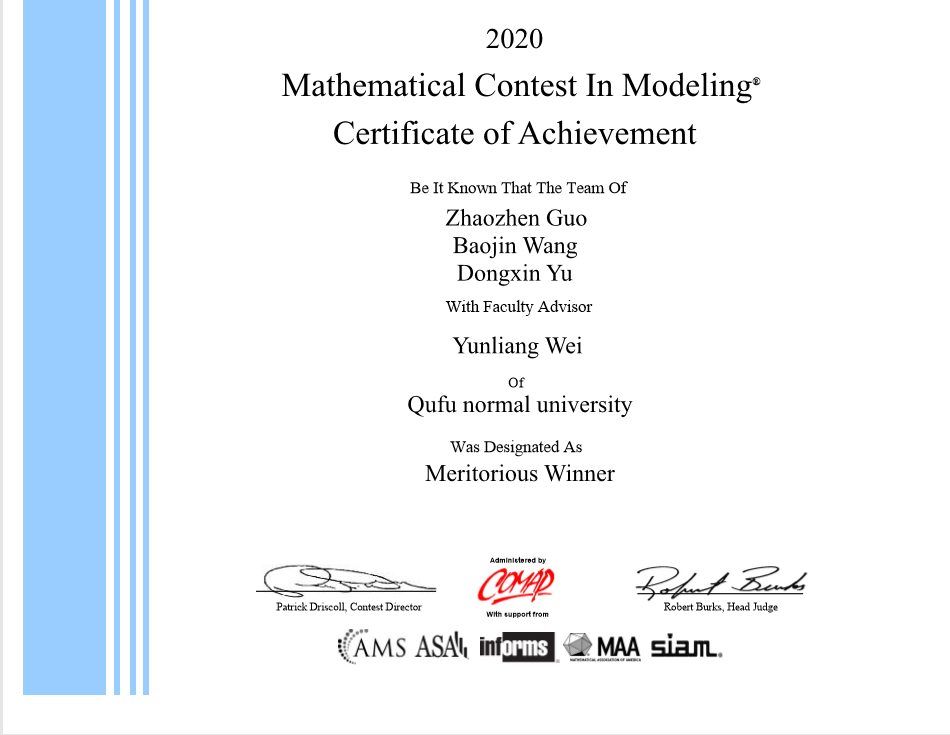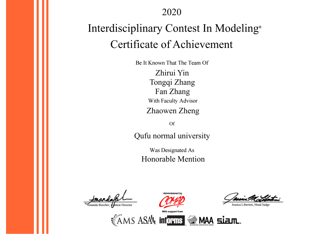 美国大学生数学建模竞赛(MCM/ICM)是一项大型的国际级的理科竞赛项目,着重强调研究问题、解决方案的原创性、团队合作、交流以及结果的合理性。每年都吸引了来自全世界 20 多个国家和地区的千余所高校参与。竞赛以三名本科生为一组,在4天时间内,就指定的问题完成从建立模型、求解、验证到论文撰写的全部工作。