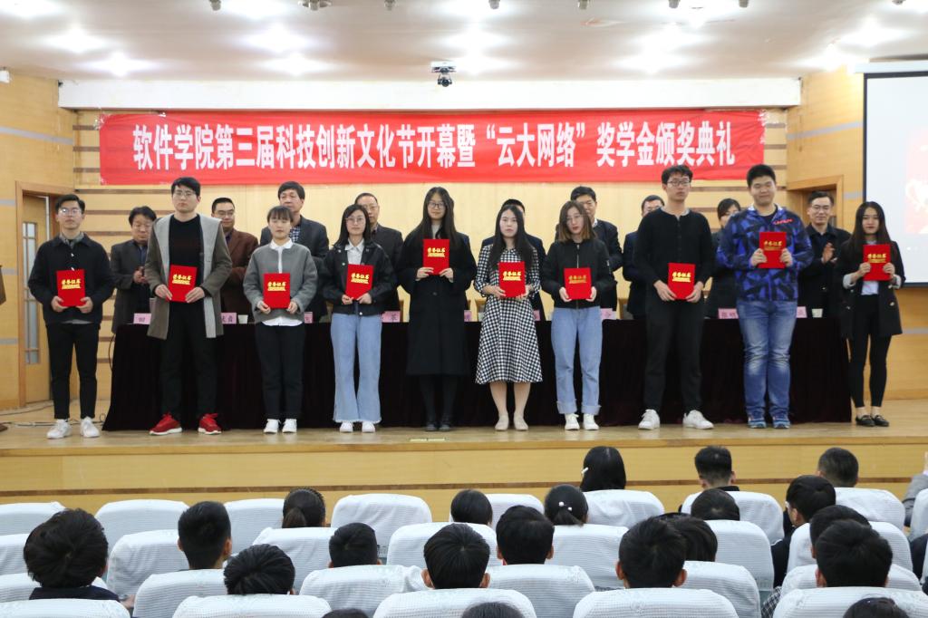 第二届“云大网络”奖学金十佳学子、“星级标兵”、最佳团队获奖名单,主席台领导为获奖同学颁奖。随后,富贵险中求