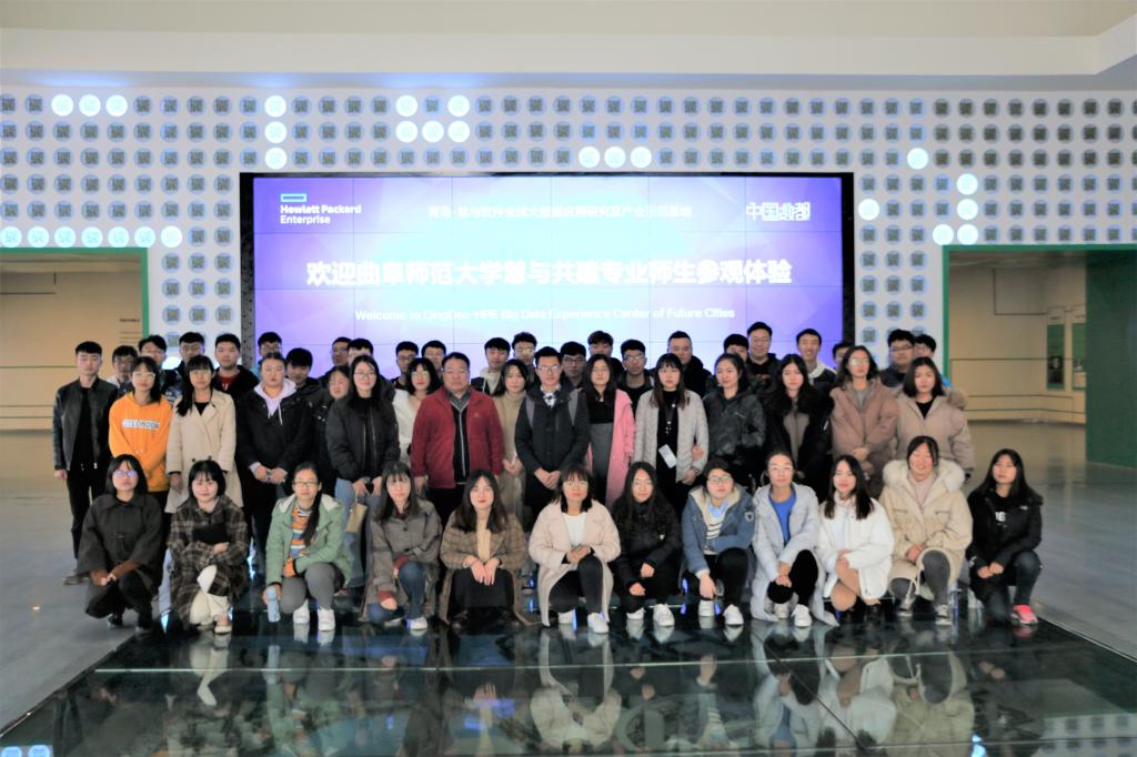 慧与共建专业师生的到来,双方合影留念后,工作人员分批次组织学生参观了未来城市体验中心暨慧与软件全球大数据应用研究及产业示范基地体验中心。同学们实地体验了大数据的魅力与力量,见证了大数据带来的社会变革,感受到大数据对生产生活的深刻影响。