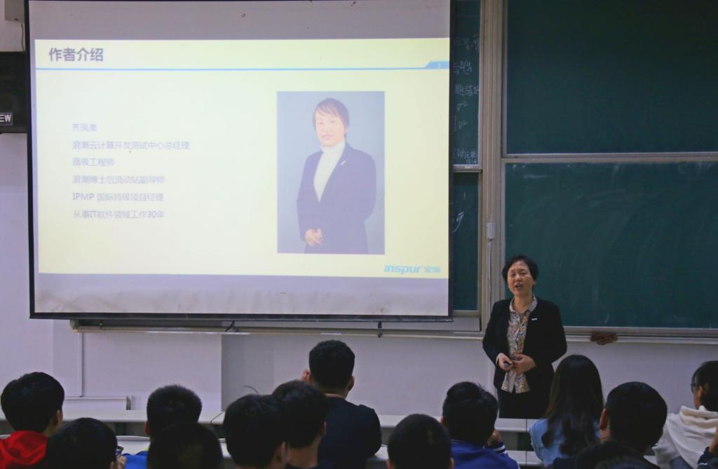会议伊始,田凯书记对齐凤美经理的到来表示欢迎,他讲到,齐经理为高级工程师、浪潮博士后流动站副导师、IPMP国际特级项目经理,从事IT软件领域工作30多年,有着丰富的实战经验,相信此次齐经理的报告定会带给同学们别样的感受和满满的收获。作为本次报告的主讲人,齐经理以云计算的改变为大局背景向大家讲解了软件业务和软件开发模型的变迁,将以往的开发测试环境与现如今对比更加体现出了当今软件开发测试工作的优越条件。齐经理给大家分析了云应用的开发特点,并聚焦微服务的关键技术 ,站在开发测试工程师技能要求角度具象化软件开发、软件测试。会议最后,高院长对齐经理为同学们作精彩的报告表示感谢,并期望同学们能够认真总结本次报告会的经验和收获,顺应时代潮流,关心前沿技术,努力使自己成为一名优秀的软件工程师。